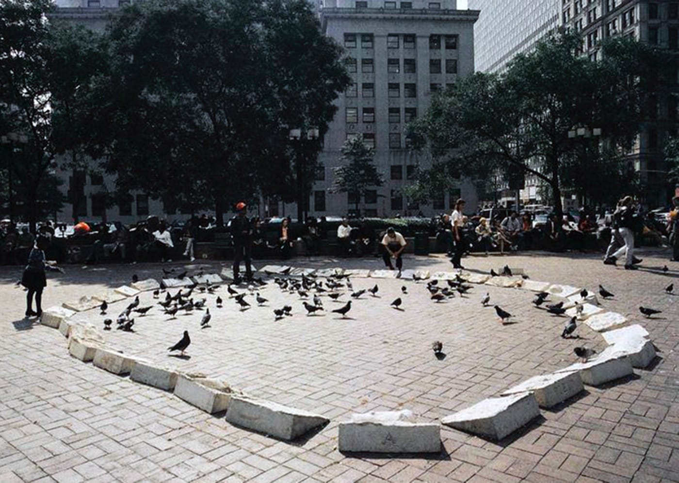 In 1990, Mohawk artist Alan Michelson placed forty cast concrete markers near City Hall in Manhattan to indicate the location of Collect Pond, a large source of freshwater for the island’s indigenous population that is now completely paved over. In 2009 African American artist Dread Scott donned a sign with the phrase “I AM NOT A MAN” printed on it, replicating the iconic message placards carried by striking, black Memphis sanitation workers in 1968, except for the addition of the word not. Walking through the streets of Harlem, Scott’s social performance art provoked the largely African American passersby to consider all that has still to be accomplished since the Civil Rights Movement. Most recently an 1870 statue of Abraham Lincoln at the northern end of Union Square Park came to life, though not with the voice of the Republican emancipator, but through the faces and voices of fourteen recent war veterans who served in Afghanistan and Iraq. The 2012 reanimated monument was the work of artist Krzysztof Wodiczko.