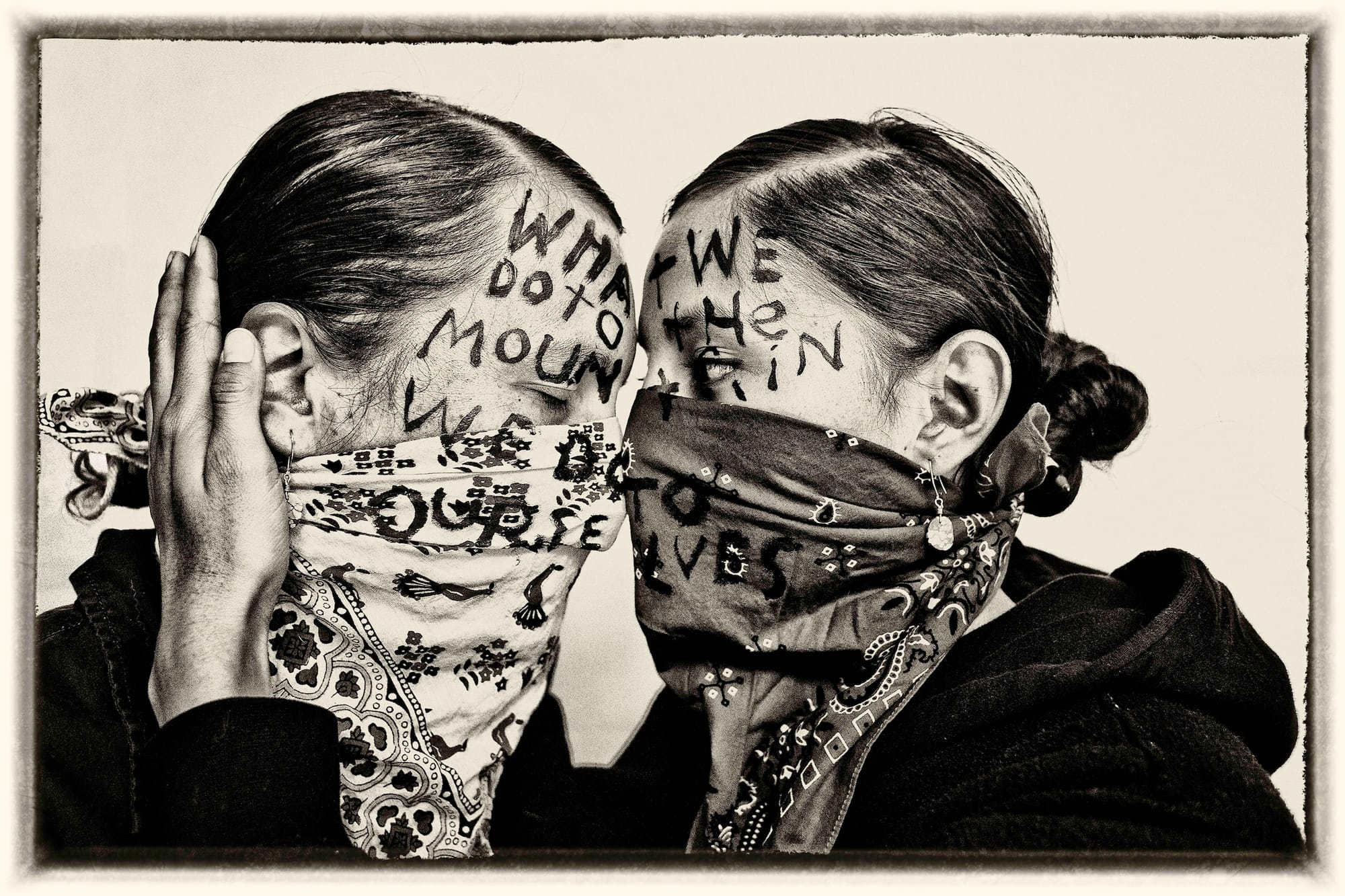 In 2011, Benally and his wife Princess Benally collaborated with artist Chip Thomas (known as Jetsonorama) on a public art project in downtown Flagstaff featuring the two gazing at each other, forehead to forehead, with the words “What we do to the mountain, we do to ourselves” scrawled across them — an active, agitprop installation meant to bring awareness to the desecration of the sacred site.