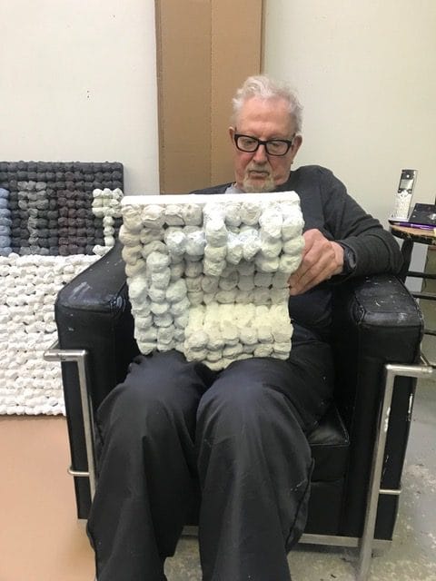Joe Zucker, who passed away on May 15 at age 82, once told me a story that I have repeated many times, often to students. In the late 1960s, shortly after he and Chuck Close became close friends, Close moved into the building where Joe had his studio. Soon after, he asked Joe to be one of the subjects of his monumental, black-and-white photorealistic portraits. Like the others in this group (Philip Glass, Mark Greenwold, and Richard Serra), the painting “Joe” (1969) was based on a clinical, mugshot-like photograph of Zucker taken by Close. According to the New York Times obituary for Close in August 2021, the paintings were “indistinguishable from photographs when seen in reproduction. When seen in person, they had a monumental, uncannily imposing presence. The giant, expressionless faces gaze back at viewers with vaguely discomfiting inscrutability. At a close distance, the paintings turn into landscape-like fields of facial details, with every hair, pore, wrinkle and blemish greatly magnified.”