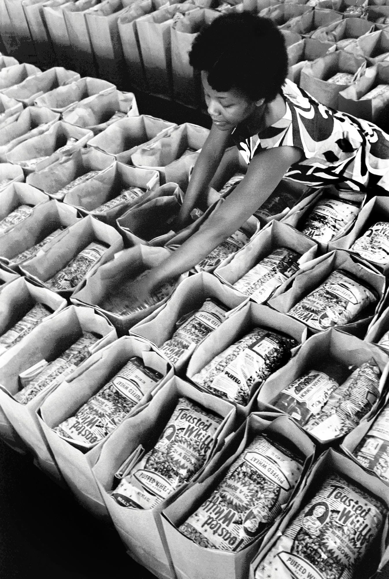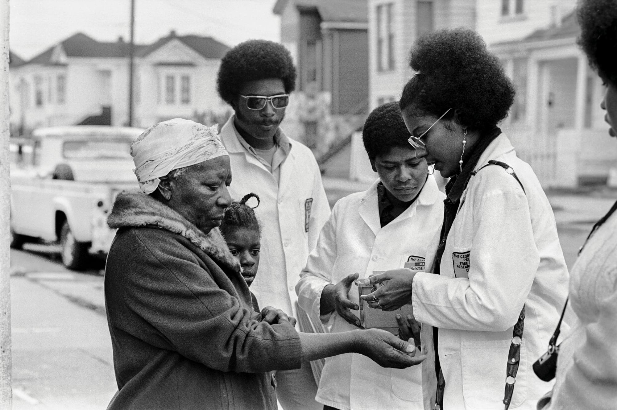 The co-founder of the party expressed interest in Shames’s work and the pair developed a working relationship. He photographed the 60 “Community Survival Programs” organized by the party as well as meetings and rallies, many of which were attended, staffed, and run by women.