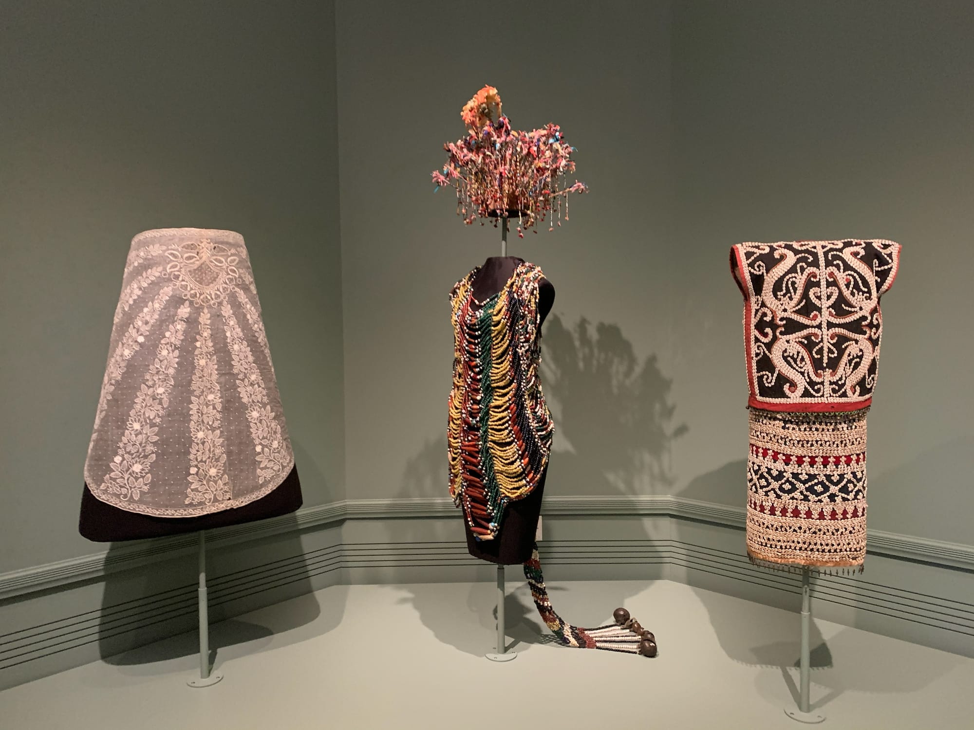 As a scholar of Filipino diasporic art, I make a small game of finding the “Hidden Filipinos” in Asian art museums and exhibitions around the world. AAM’s count of four is dire: Bustillo’s educational table, the beautiful piña garment in the Cowles Gallery, a pair of improperly labeled Ifugao “rice deities” in a room focused on festivals and celebrations, and a quote from local Filipinx artist Moonyeka used as a didactic text. (Filipinos are temporarily represented in the lower level’s beautiful new community galleries, where the community partner for this season, API Chaya, has strong ties to Seattle’s Filipino American community.)