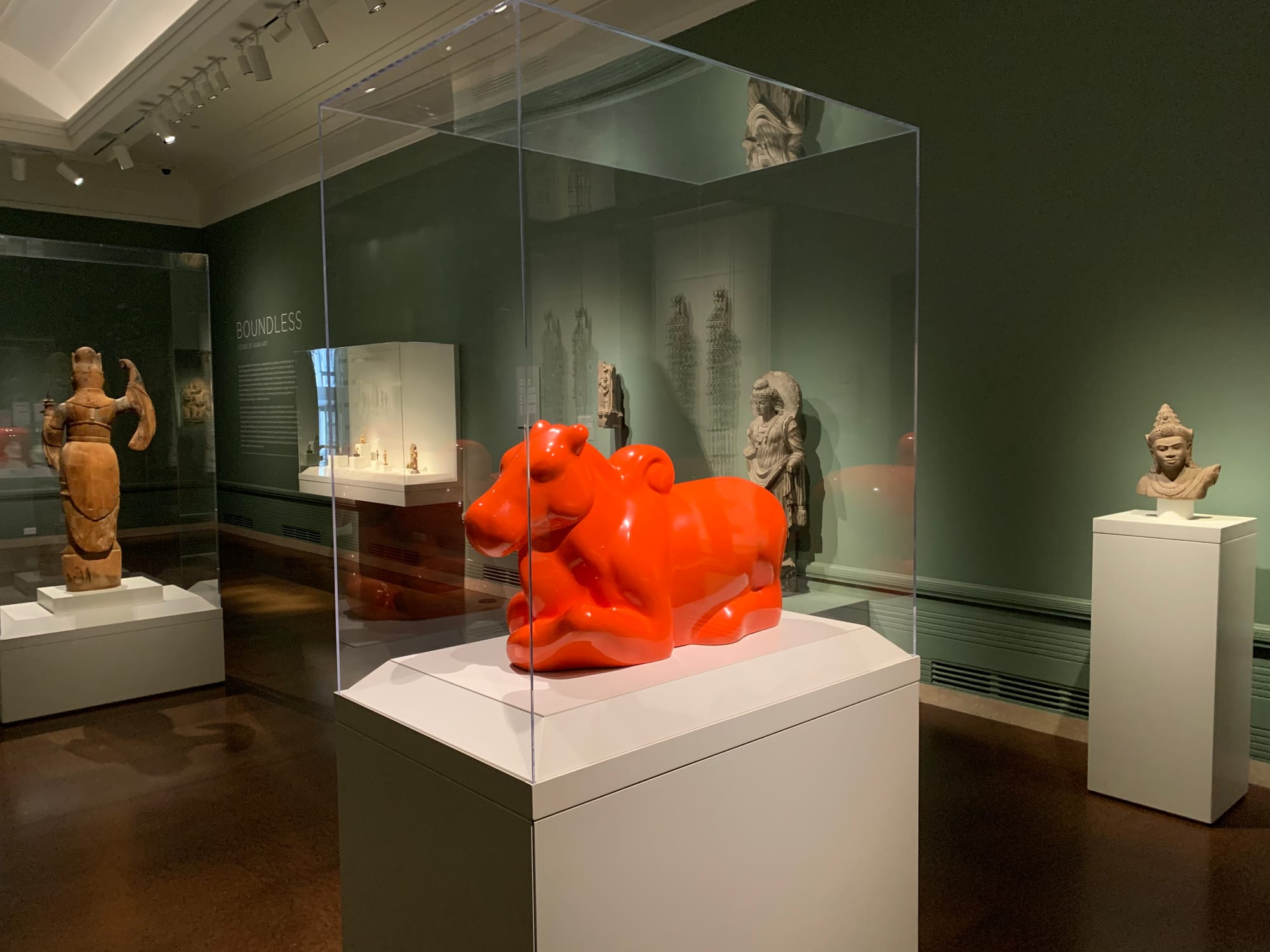 It is, frankly, an affront that the fine art traditions of Southeast Asia and its diasporas — outside of Buddhist representations and the occasional Islamic text — are continually snubbed by museums purporting to “embrace the complexity of its vast and profound subject” of Asia (as stated in the AAM press materials). Three full rooms in the museum are dedicated to Buddhas, making clear the geographic and historical collecting priorities of the museum’s founder and its subsequent curators. While Muslim, Jain, and other religious and spiritual traditions are represented in flashes throughout the galleries, only so much diversification is possible if there are no pieces in the collection to draw from, or curators dedicated to art outside of Japan, China, Korea, and South Asia.