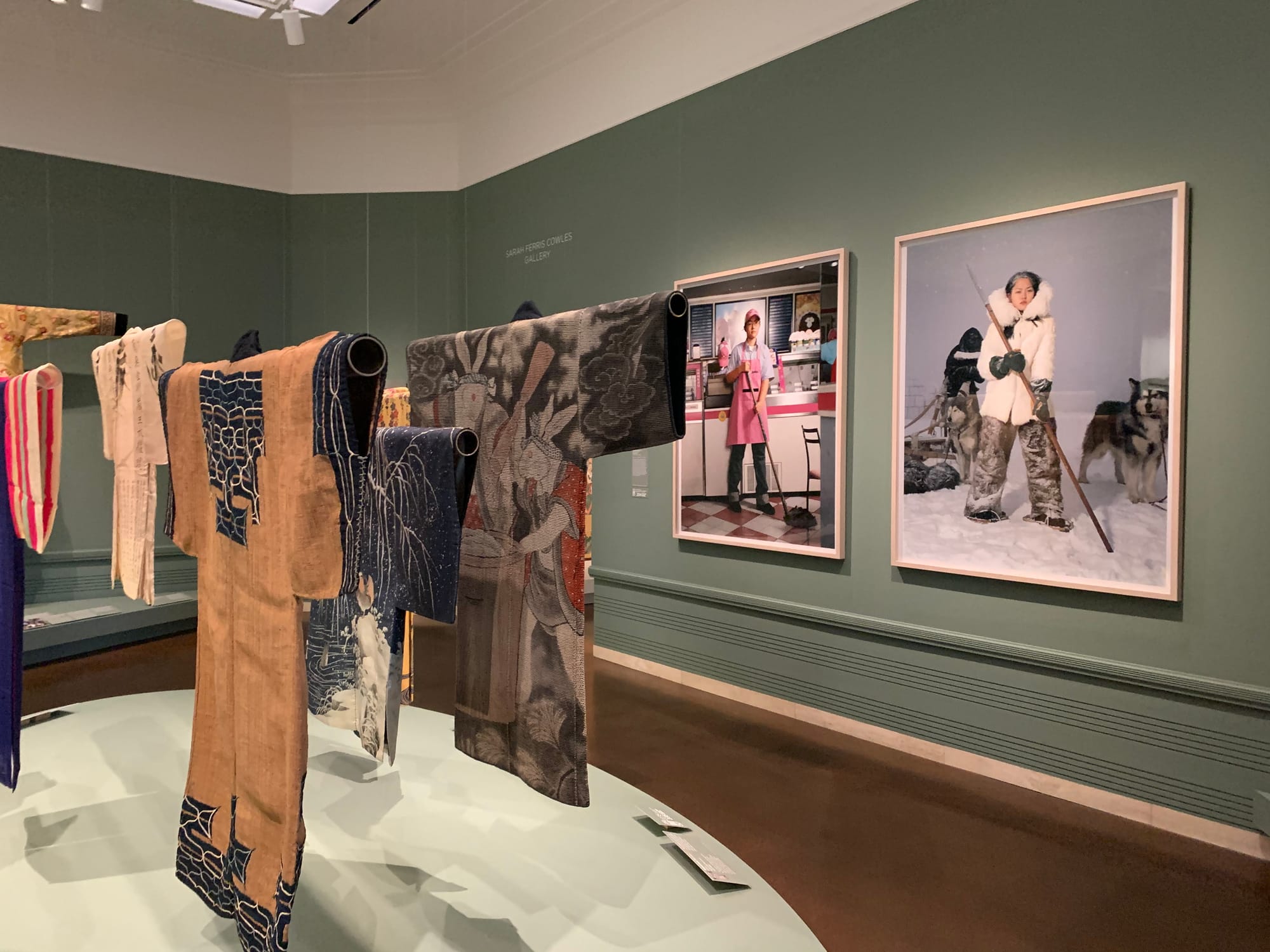 While the cosmetic facelift is impressive — especially in the wings with panoramic views of Volunteer Park — the art is what matters. The museum now touts itself as the only dedicated Asian art museum in the United States with all its galleries organized by theme rather than geography. The first two galleries seem to be the strongest in this regard. The Cowles Gallery’s theme responds to the question “Are we what we wear?” To the left of the entrance, a trio of garments from the Philippines, Indonesia, and Malaysia showcase resonances between the textile traditions of these three island nations in beading, patterning, and the use of natural shell and fiber. More provocative are two C-prints from Jung Yeondoo’s BeWitched series (2001–2004), in which the artist juxtaposes one portrait of his subjects in their daily life and a second staging their fantasy life. In this diptych, a femme from Seoul appears bored in her Baskin-Robbins uniform on the left, but fierce in furs and leather in an Arctic hunt scene on the right.