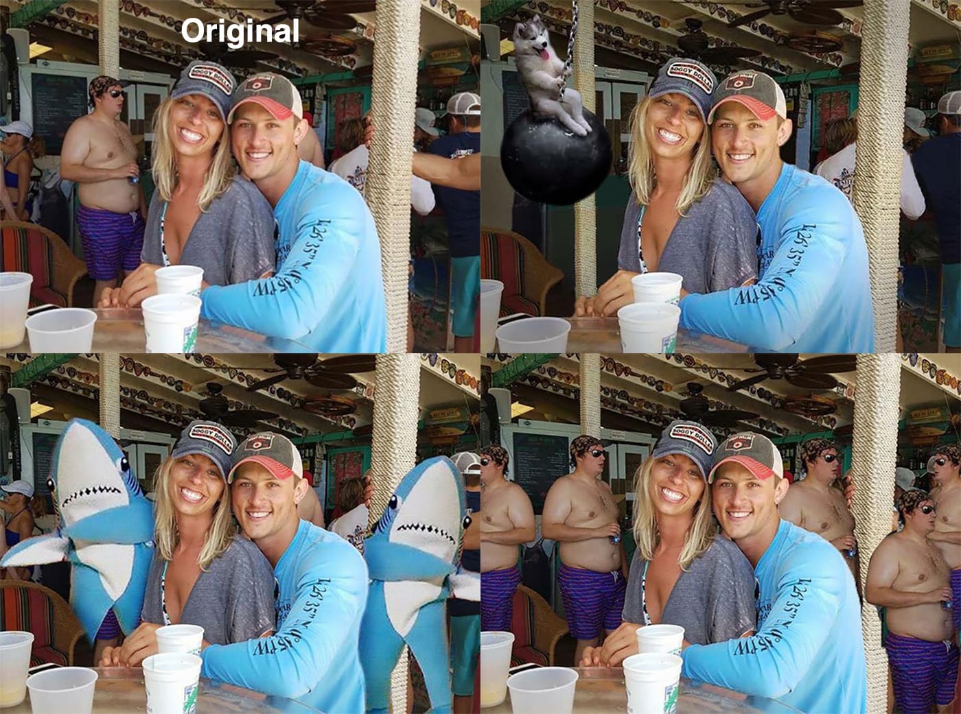 - One couple asked the internet to help them photoshop some shirtless guy out of their lovely pic and then the internet responded and made them a meme. Here are some of the images: