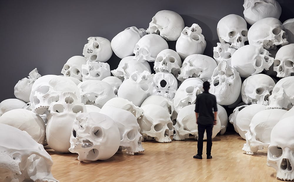 This week, Ron Mueck's giant skulls, white men on pedestals, the world's first biological house, destroying modernist landscapes, a dog named Masterpiece, and more.