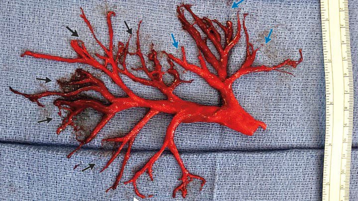 - Someone coughed up this blood clot that is in the exact shape of the critical airway it had been blocking. The Atlantic has the whole story: