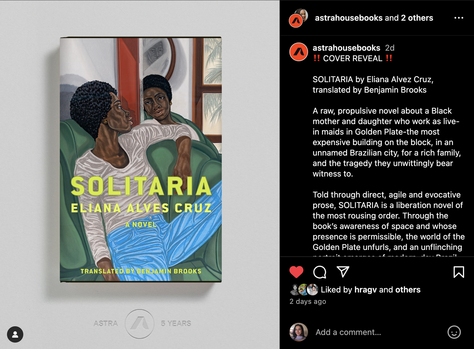 ‣ Artist Toyin Ojih Odutola created a painting for the cover of this forthcoming Eliana Alves Cruz translation by Ben Brooks. We are entering a new era of book covers, and I'm so here for it: