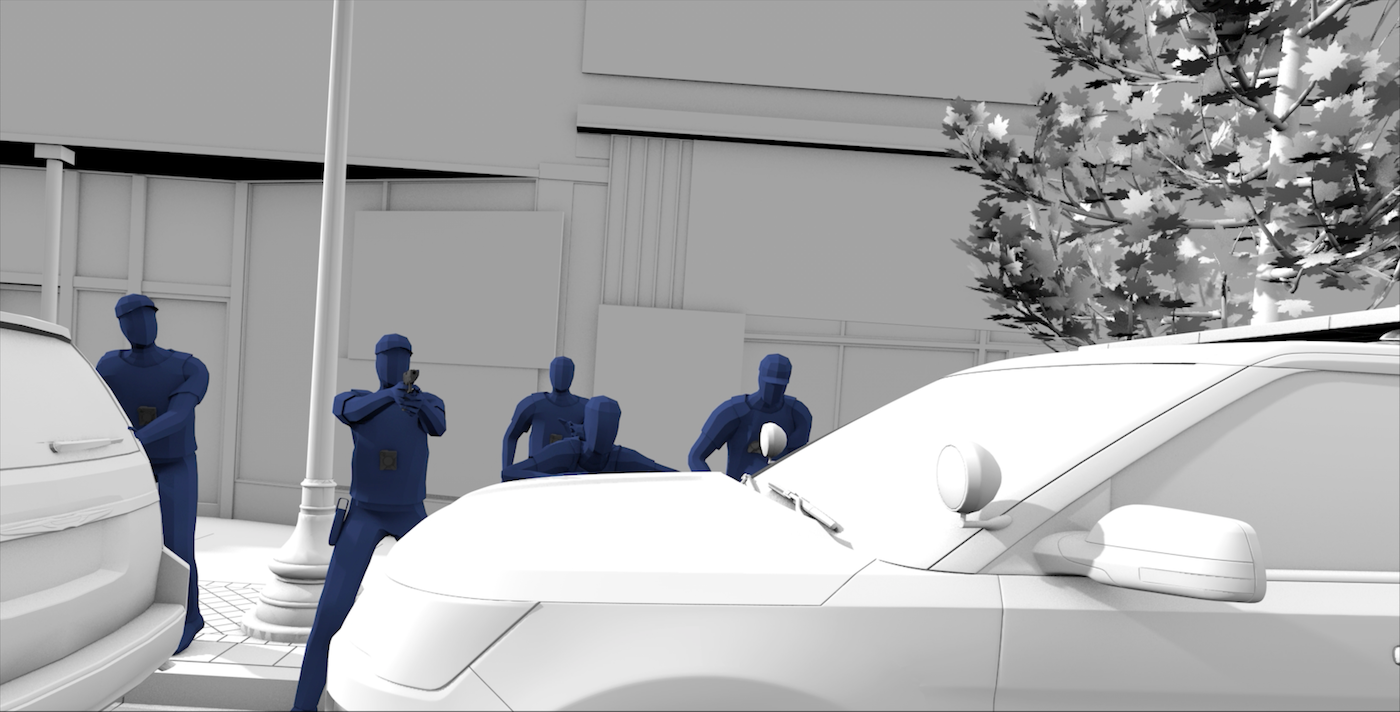 What Six Durations unveils is how determined Halley’s decision to shoot Augustus became in the moment. Renderings of the altercation show him pushing Flemming’s arm outside of his line of fire. He waits for Augustus to stumble past the police car and then shoots four times — and then there is a significant, unexplained pause before he shoots Augustus, already on the ground, for a fifth time.