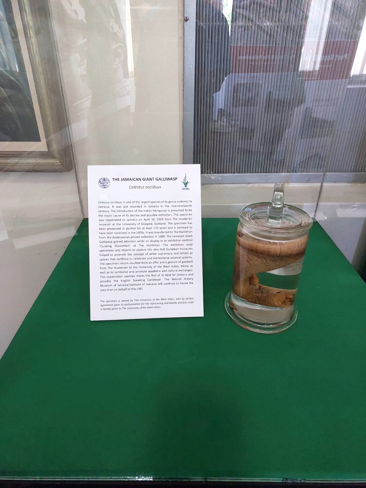 Scientists from the NHMJ and UWI traveled to Glasgow in April 2024 to pick up the reptile specimen, which was repatriated by the University of Glasgow under the 2019 memorandum. Originally a part of the Andersonian collection, it was absorbed into the school's Hunterian Museum collections in 1888 but had remained in storage. Scientists in Jamaica could study the Jamaican giant galliwasp only if they were traveling to the United Kingdom or the United States, where they could engage with specimens in collections there or study an (inaccurate) drawing by Hans Sloane, a collector of natural history who traveled to Jamaica in the 1680s.