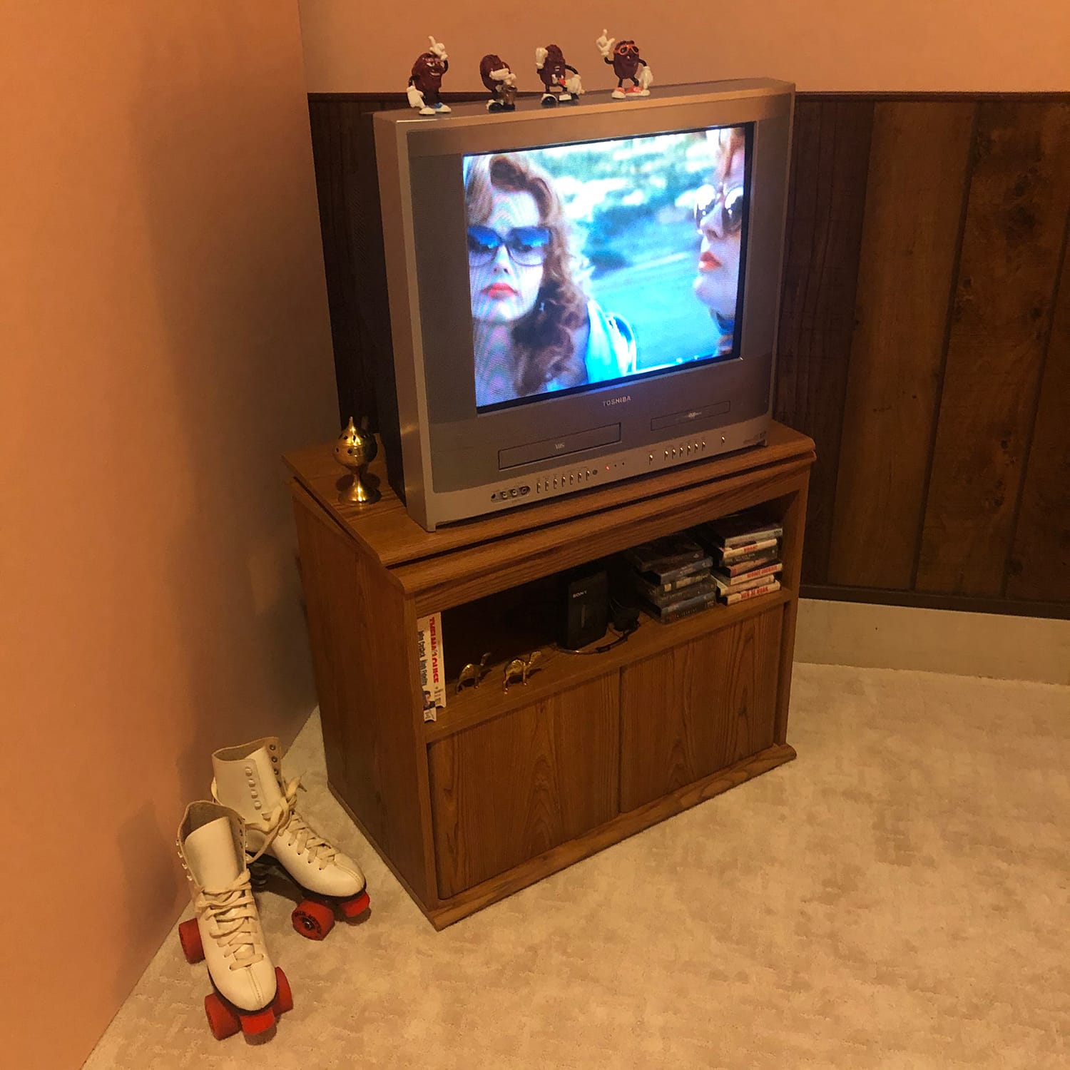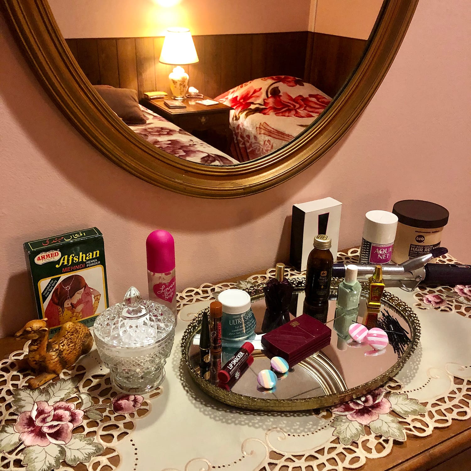 Visitors are invited to explore the space: lift the rotary phone to hear pre-recorded messages and fictional diary readings meticulously constructed (in collaboration with artist Randa Jarrar) that tell the story of two teenage sisters, each grappling with her own set of issues around identity and individuation.