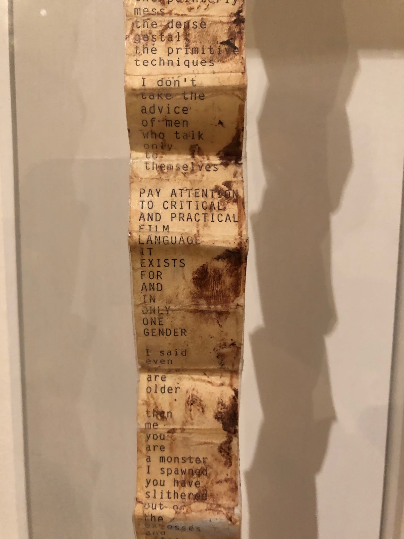 CO: I liked seeing that physical reaction to your work. This is something you seem to have understood from the very beginning of your art-making career: there is no divide between the mind and body. Your basic refusal to accept this binary seems to have marginalized you and your work, but also seems to energize you.