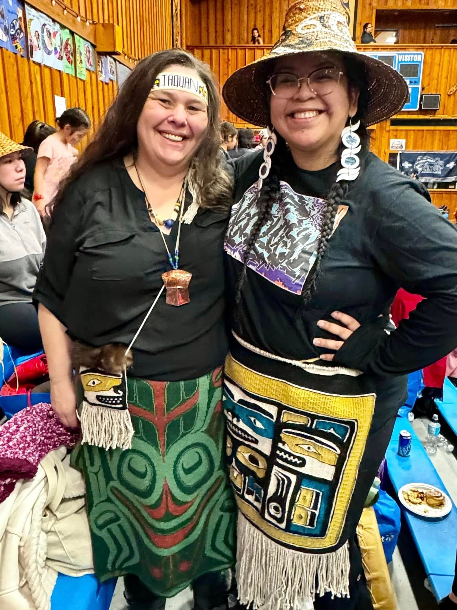 This is my first step on a research journey to gather our story. It is a story of choice, of prioritizing family and language, of hope and reconnection. Teedsa (“teacher”) sits at the desk where she’s met virtually with Sm'algyax language learners since 2020. I sit next to her and explain with words she taught me why I have come: “Hasagu dm algyack Sm'algyax dihl nuun. Hasagu dm wilaayu da dzabm gwishalaayt” — “I want to speak Sm'algyax with you. I want to know about making gwishalaayt, Chilkat dancing blankets.”