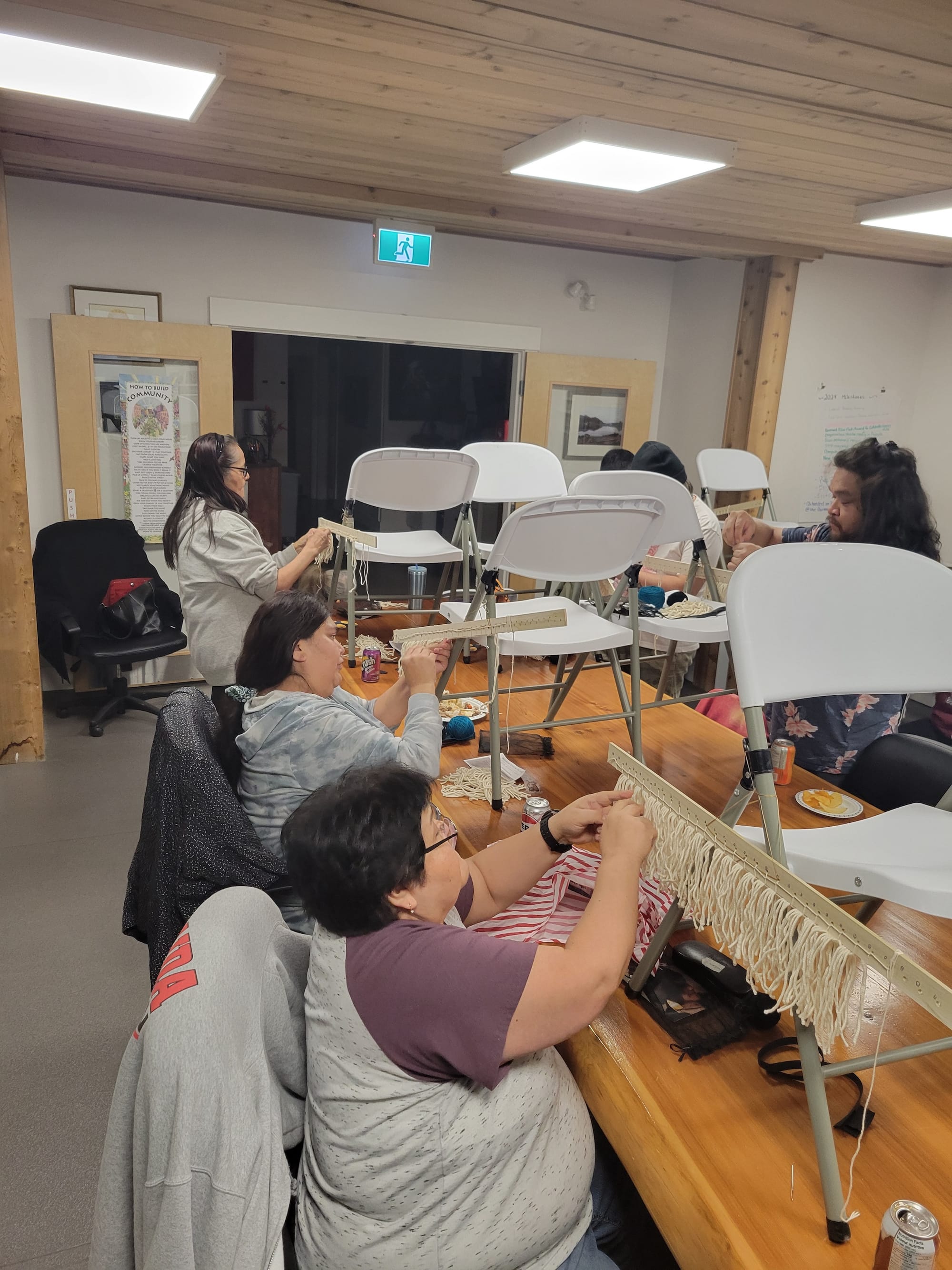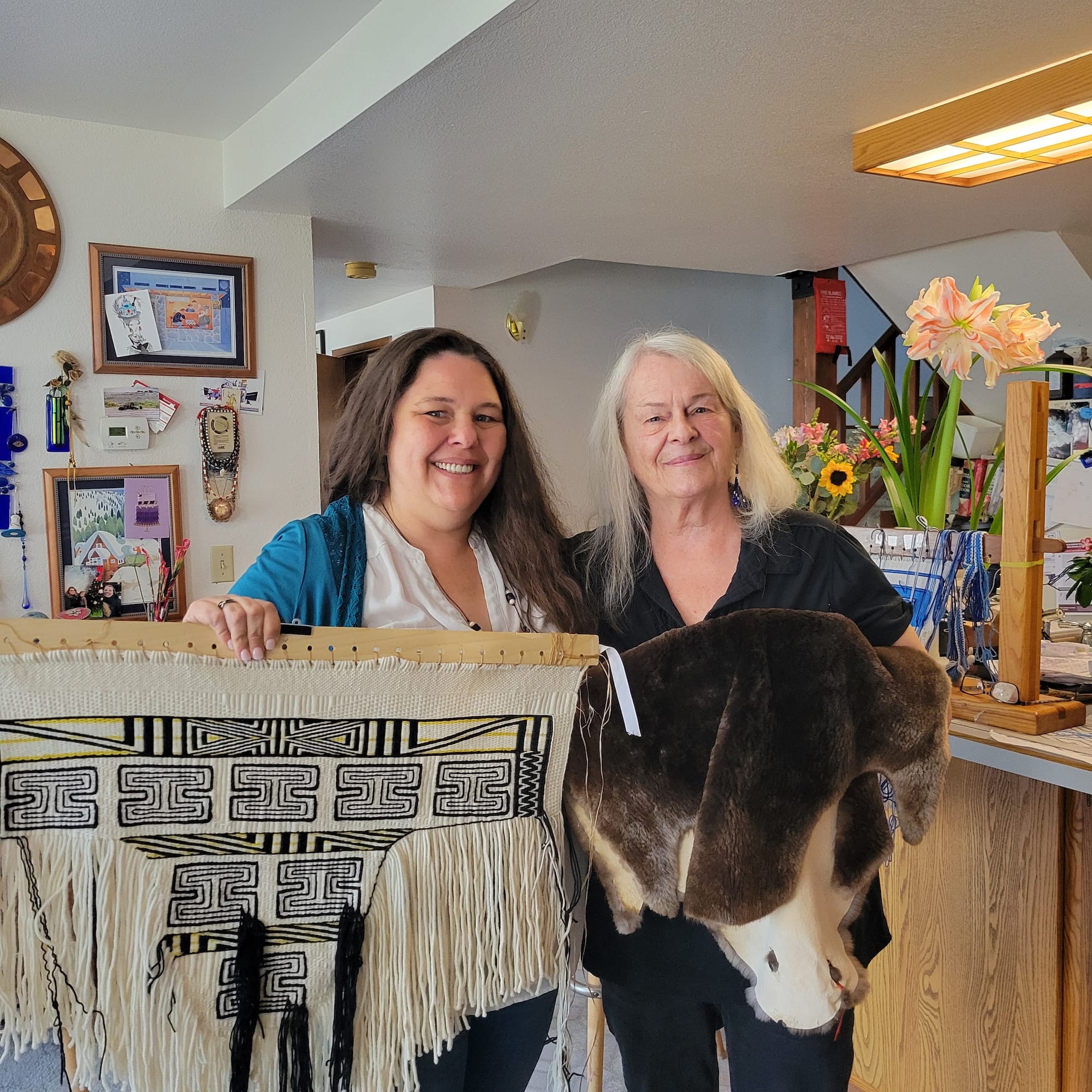 At each stop on my research journey, comprising an education in language, history, and Chilkat weaving itself, I give where I gather. After five years of training, I now teach weaving to communities who have dreamed of having their hands in the warp and the weft for centuries. I prepare each new weaver to share their training with people who experience the same barriers to access we are overcoming. While we gather knowledge about the craft of dancing blankets, we give everything we learn to our relatives. We continue to contribute where we receive, increasing the number of contemporary Tsimshian Chilkat weavers and building relationships that increase our knowledge and understanding of this ceremonial practice. We craft our dancing blankets in ways that will make our past ancestors pleased with their future ancestors. We are weaving in a good way.