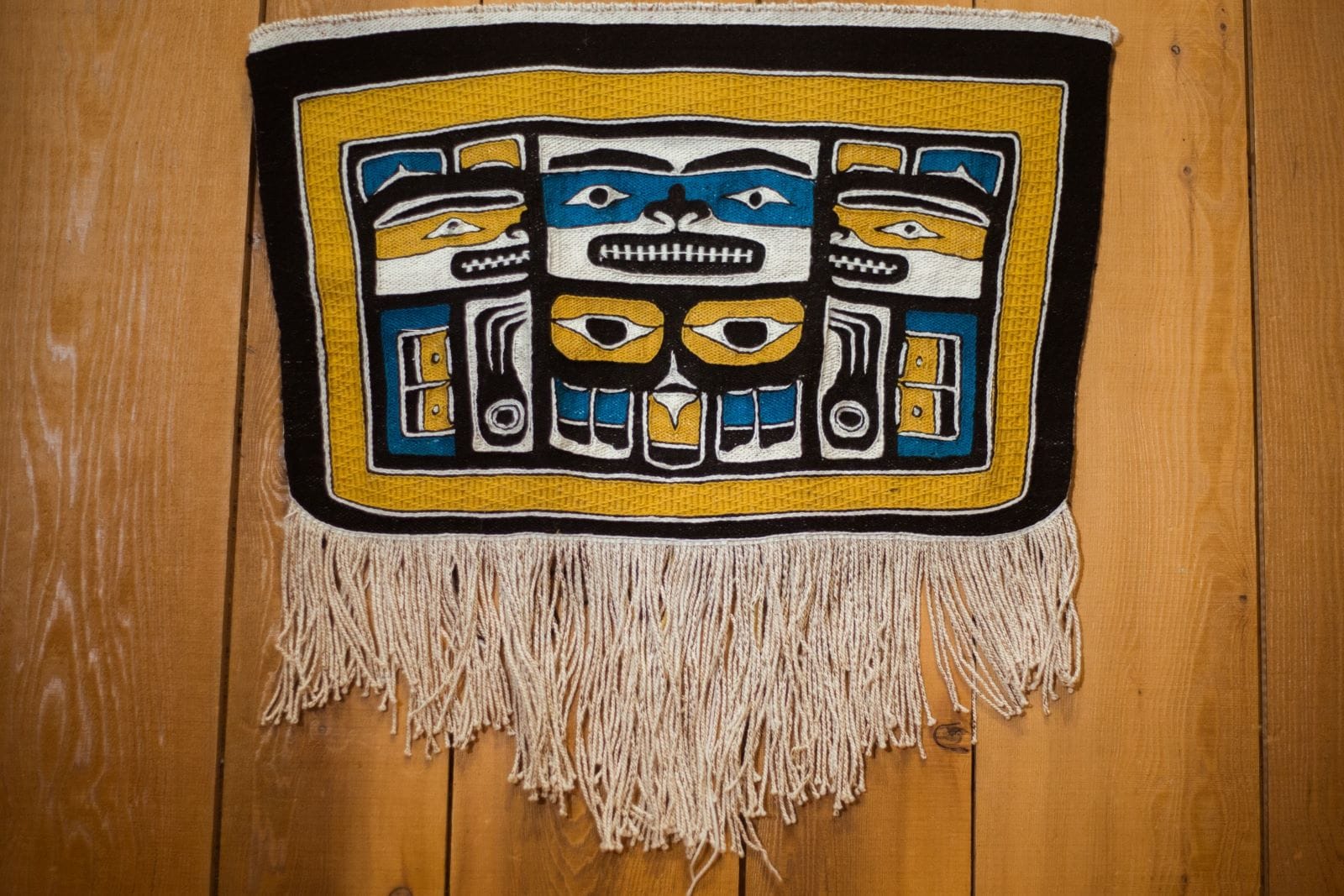 While Tsimshian people released ceremonial arts, Haida and Tlingit artists held the traditions with respect and honor. Carving and weaving knowledge passed from generation to generation, often secretly and at the risk of incarceration. Our dancing blankets joined art collections worldwide and the ceremonial craft of the Tsimshian people became known as Chilkat weaving.
