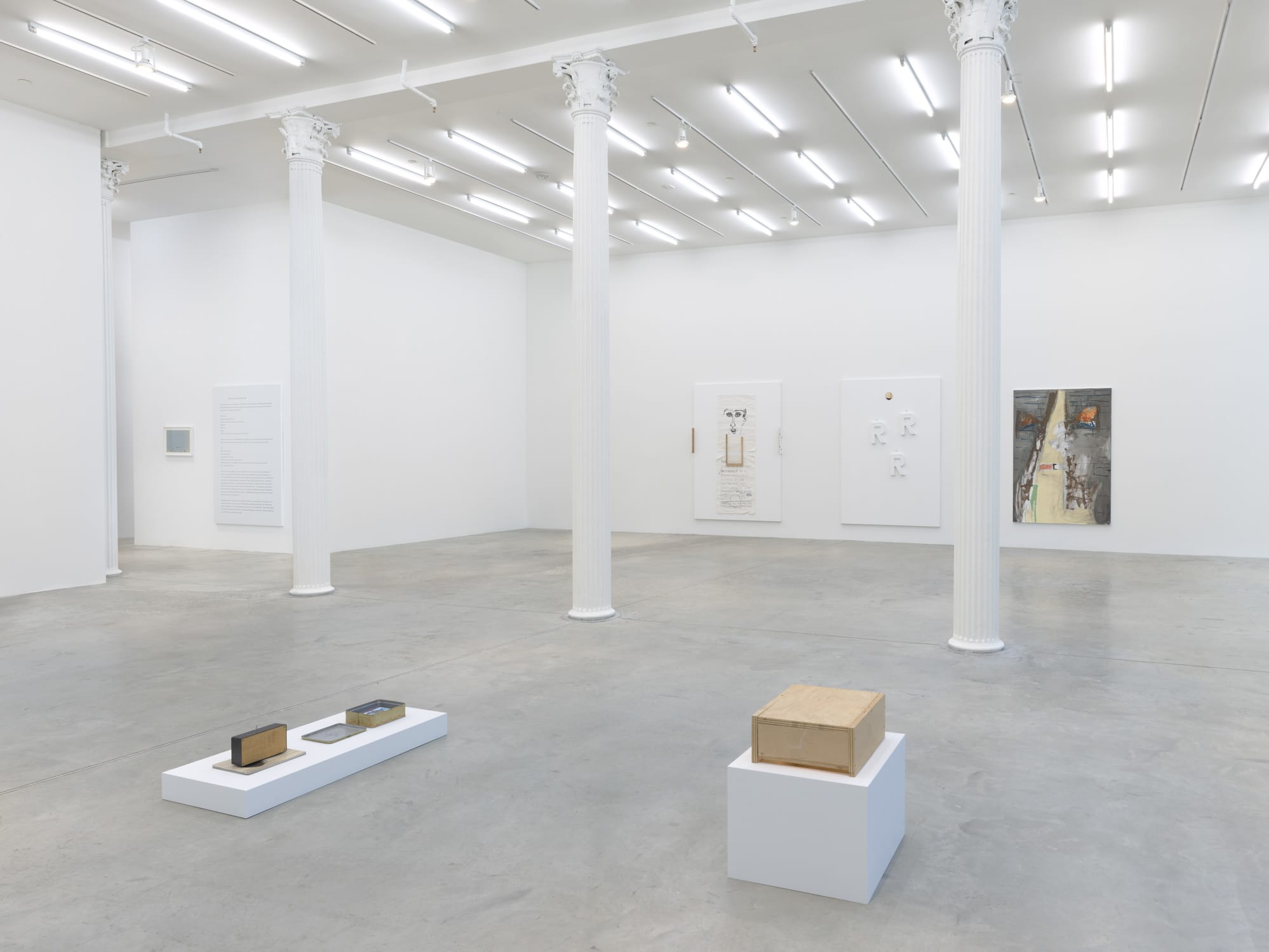 Enter the Mirror, Richard Aldrich’s fourth solo exhibition at Bortolami, opens with two works in the gallery’s front hallway.