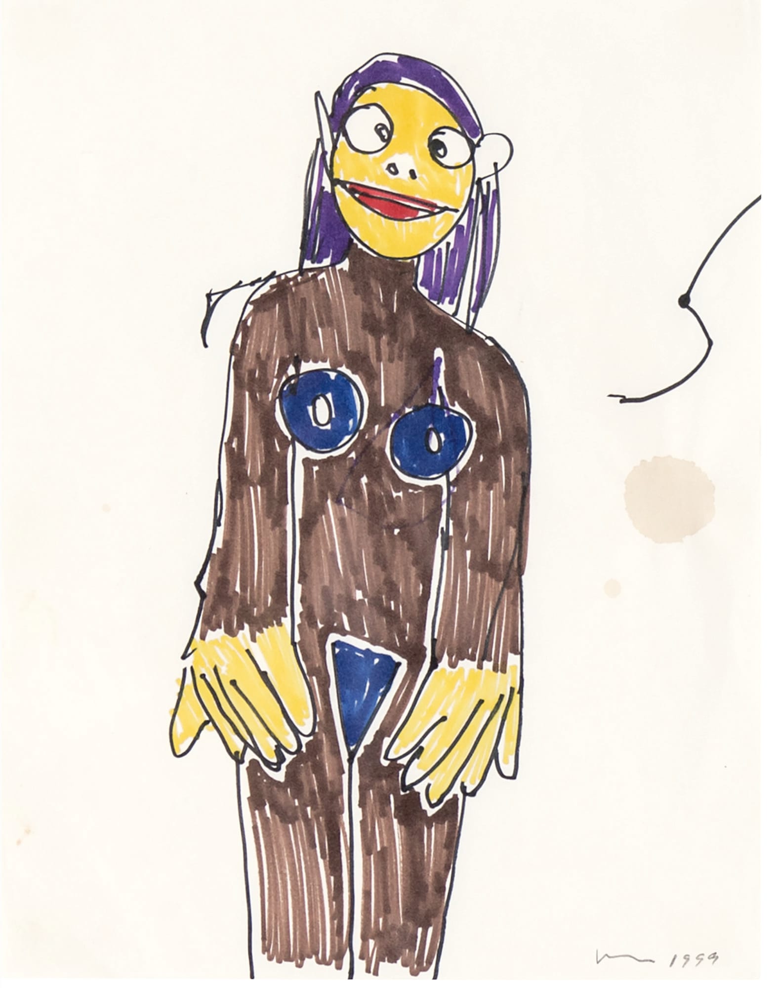 There is nothing really expressive about the “Hippie” drawings: they are generic recyclings of self-taught art. If you are able find some commonality between Prince’s laid-back marker drawings and the obsessive concatenations of Adolf Wolffli or Martin Ramirez, or the visionary memories of Bill Traylor or Minnie Evans, I have a bridge to sell you.