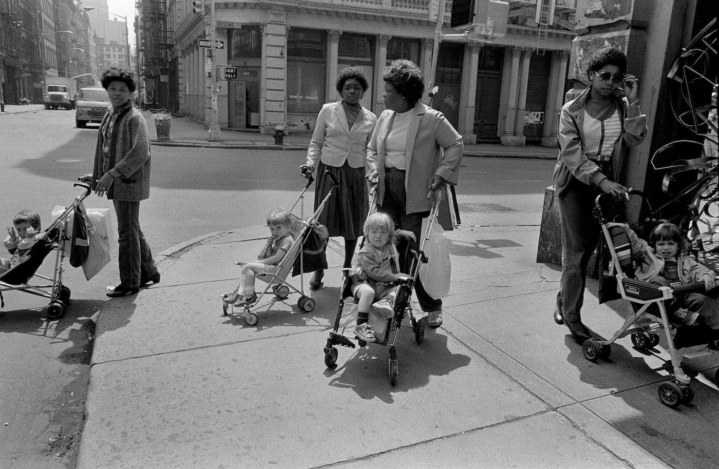 Each photograph hums with a density of colliding lives, that never quite cross their divides. The furs and opulence of 1980s Wall Street thrive alongside poverty and grime. “What a play we put on in front of each other on the streets, living so close the way we do, like mice in a burrow,” writes author Jonathan Ames in an afterword. “A play of greed, decay, venality, beauty, longing, hidden meanings, coincidences, love, terror, mundanity, suffering, boredom, loneliness.”