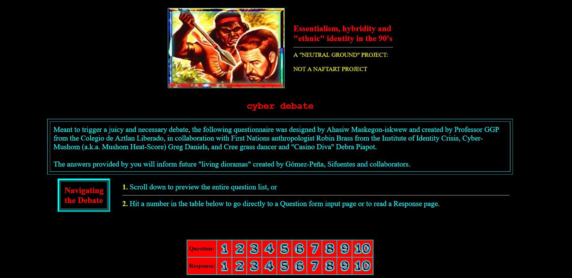 The benefit of an open source tool like Conifer is the ability for it to be accessed by smaller institutions and artist-run centers. This is the case for Neutral Ground Artist Run Centre, which has a significant archive of Flash web art projects commissioned through its Soil Media program. Active from 1997-2015, SOIL Media was one of the first long-term new media projects led by a Canadian artist-run center, supporting presentations and artist residences by mid-career and established artists like Paul Wong, Guillermo Gomez-Pena, and Ahasiw Maskegon-iskewew.