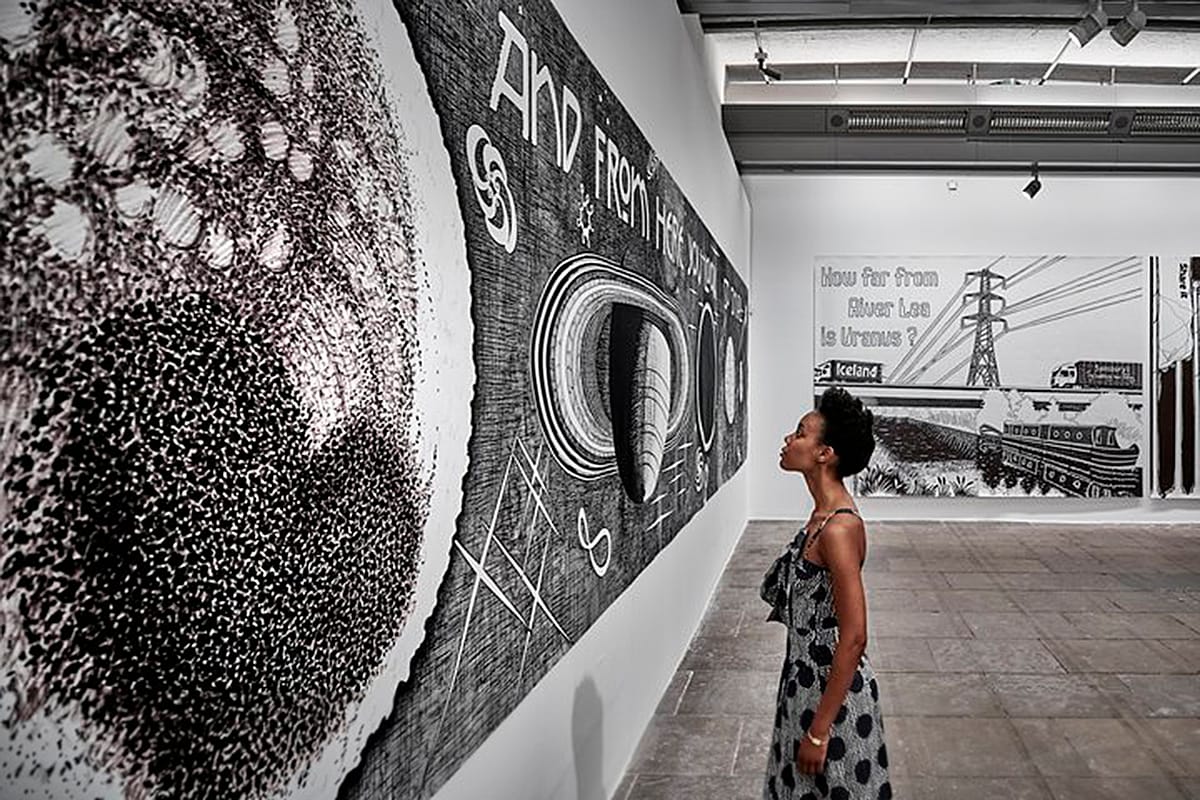 Meanwhile on Earth, Aleksandra Mir’s “Space Tapestry” project remains on view at Modern Art Oxford and Tate Liverpool. The project features wall-size black-and-white drawings inspired by the Bayeux Tapestry of the Norman conquest and depictions of Halley’s Comet in 1066.