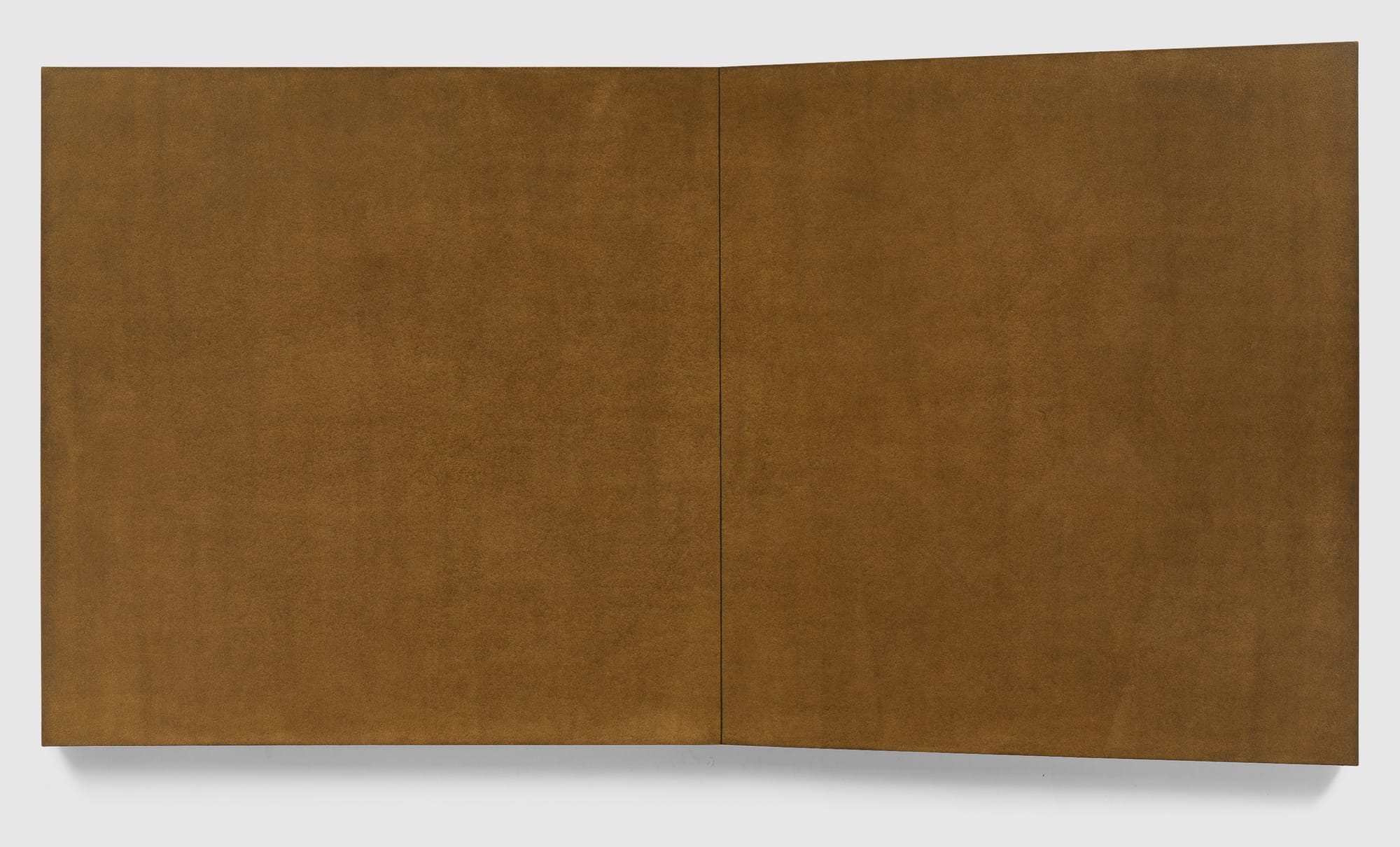Each time I looked at “Two Merging Squares” — which was my favorite work in the exhibition — something unsettling happened. The painting’s flat surface seemed to bend. Or was the right side starting to fall back, as if the wall was unable to hold it up? Some might prefer to read this as purely an optical phenomenon. However, I found “Two Merging Squares” emotionally wrenching and brimming with feeling, while at the same time self-contained and reticent.