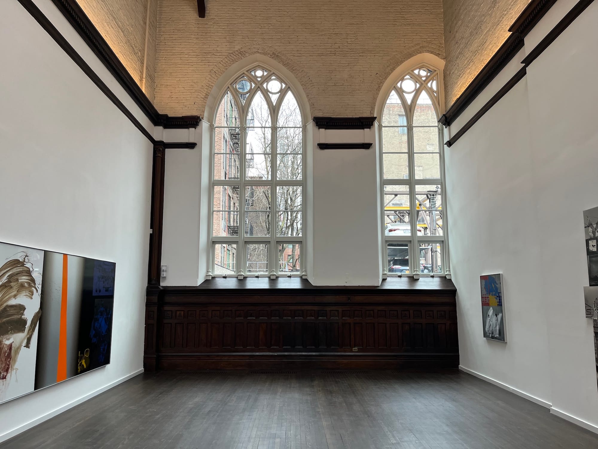 When Rauschenberg purchased the building, pews and an altar still stood in the chapel, illuminated by stretching pointed windows. The artist removed the religious fixtures and spent a year renovating 381 Lafayette before moving in. He exhibited art and threw parties at his new mansion, creating a community space inside the brick church. Soho was the newest frontier for up-and-coming New York artists and galleries, a gritty neighborhood unrecognizable from the upscale shopping district it is today.