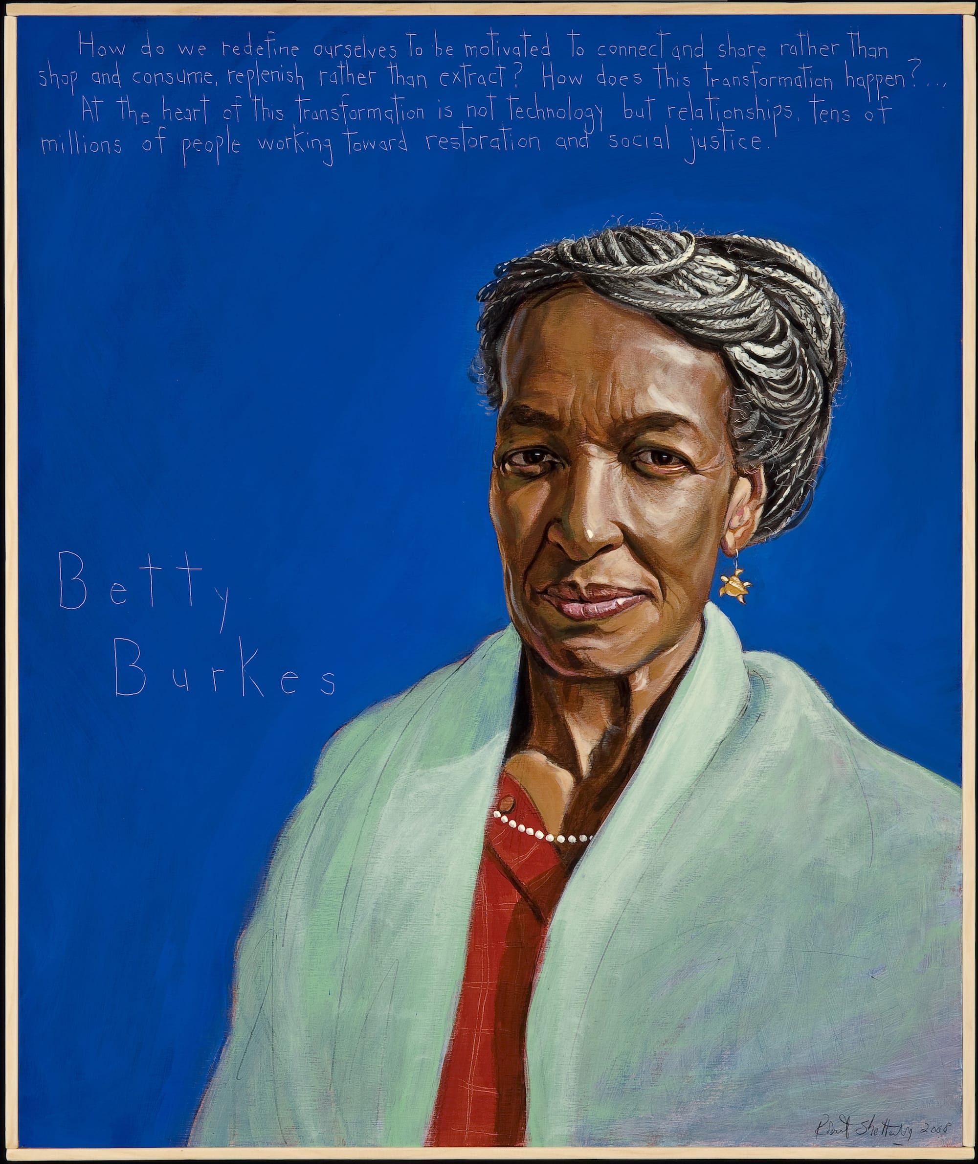 Collectively, the portraits form a picture of multiple generations of peacemakers, whose varying approaches to activism span grassroots organizing, journalism, public service, diplomacy, education, and authorship. Though their work may seem unrelated to each other, Shetterly points out that these subjects are connected on a foundational level.