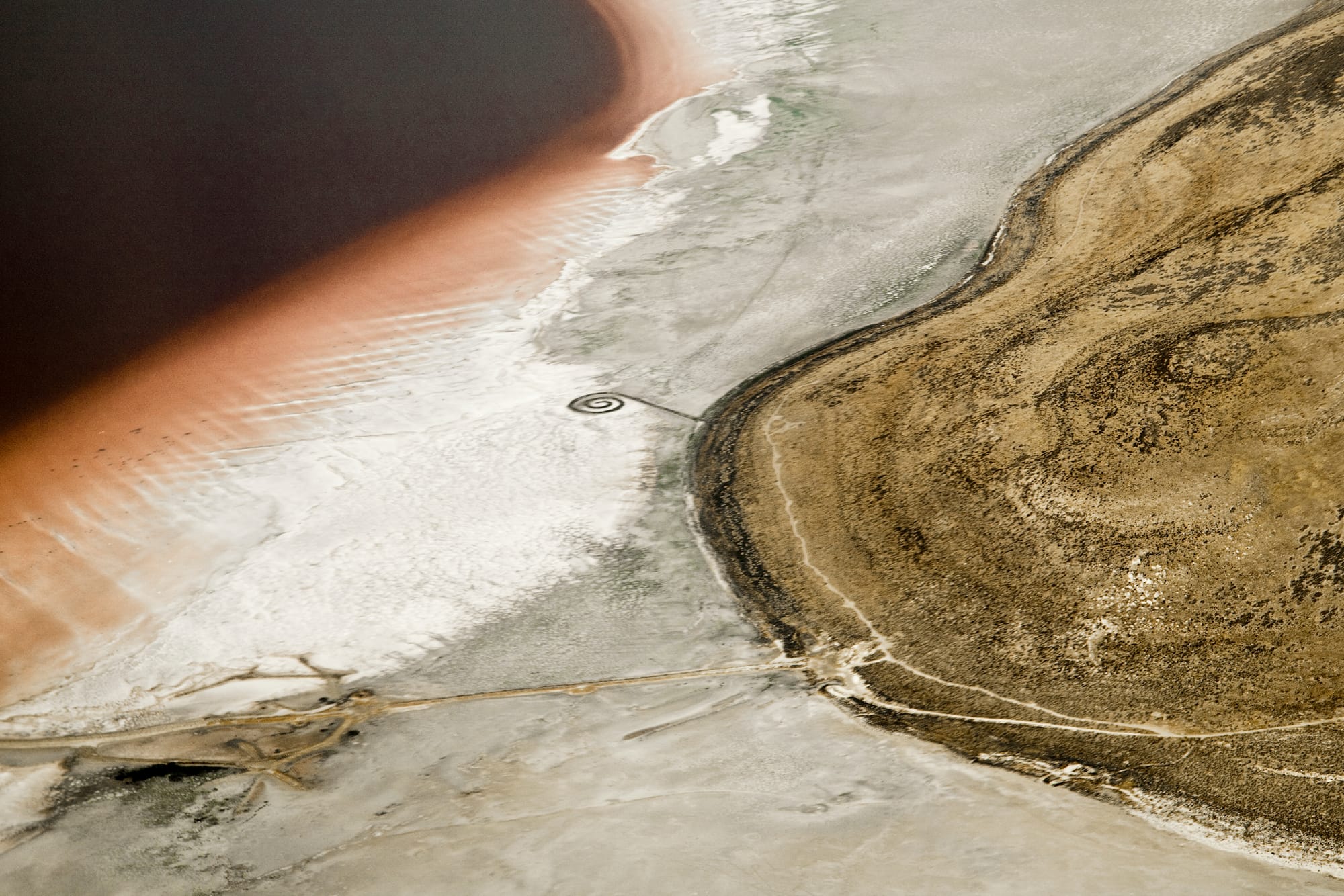 Entropy was the driving force for Smithson's monumental endeavor, as the artist was intrigued by the unusual microbe- and mineral-rich basin that gave the brine its reddish-pink hue at the time and by the lake's salinity, which allows for very few species to survive. When Smithson surveyed the area, the arid surroundings were marked with defunct industrial features such as an old pier, some shacks, and a couple of rusted oil rigs. He paid $100 (renewed annually over 20 years) to start leasing 10 acres of land at the basin and got to work.