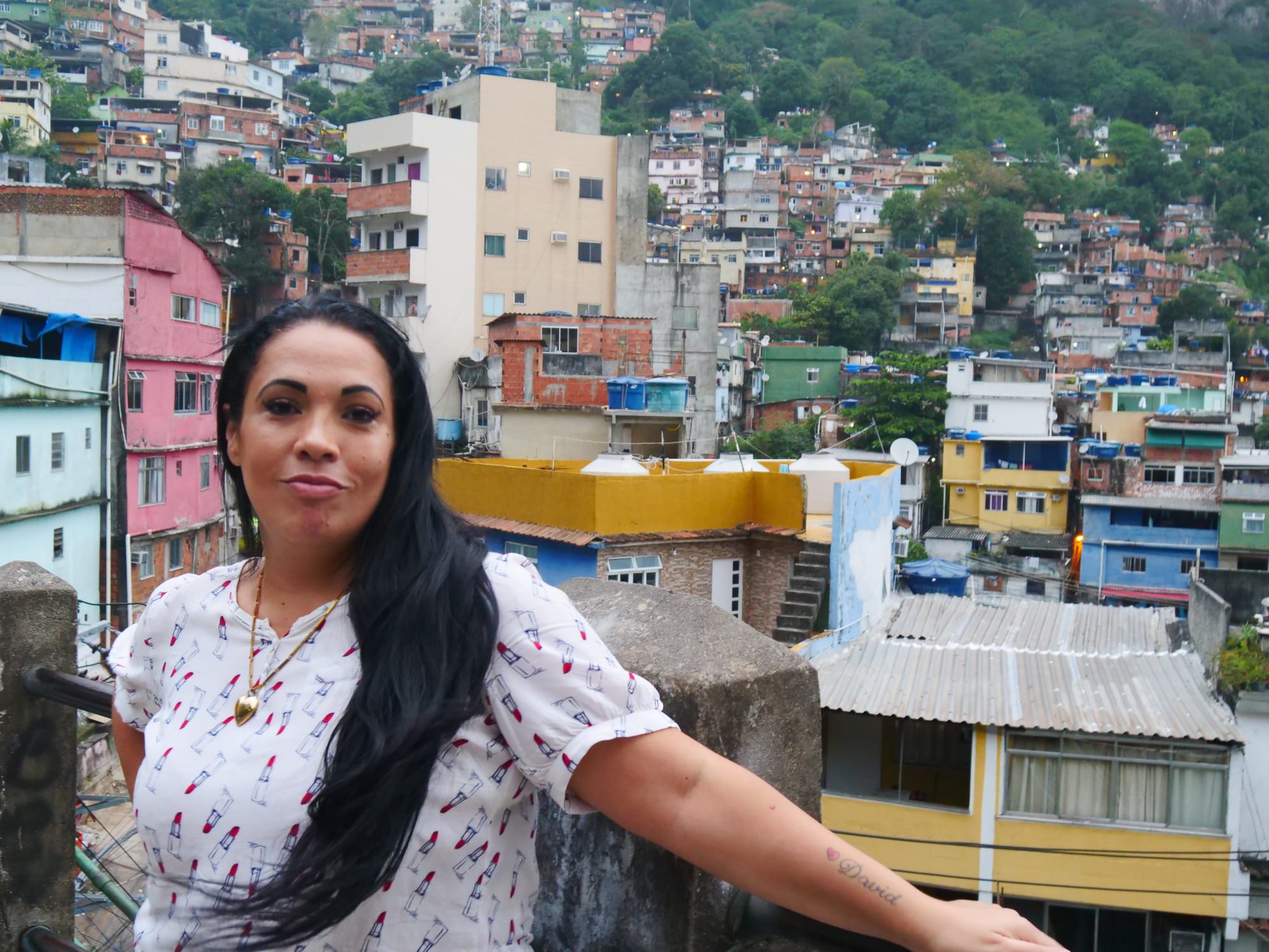 RIO DE JANEIRO — Stacks of houses that showcase raw, exposed brick frame the rooftop view where I meet screenwriter Fabiana Escobar, or Bibi Danger, as she is known in Rio de Janeiro’s Rocinha, the largest favela in Brazil. With around 70,000 inhabitants, Rocinha is a vibrant community made up of low-income improvised homes built atop rolling hills that tower over Rio de Janeiro like a city within a city. Rocinha is also where, since 2015, Escobar and four other filmmakers have championed a budding film scene they call “Rocywood,” combining Rocinha with Hollywood. Their Rocywood production company has one award-winning short under its belt and another short and two features in the making. The films portray local realities, from the joys of growing up in a tight-knit neighborhood to the difficulties residents face living among drug traffickers and gun violence.