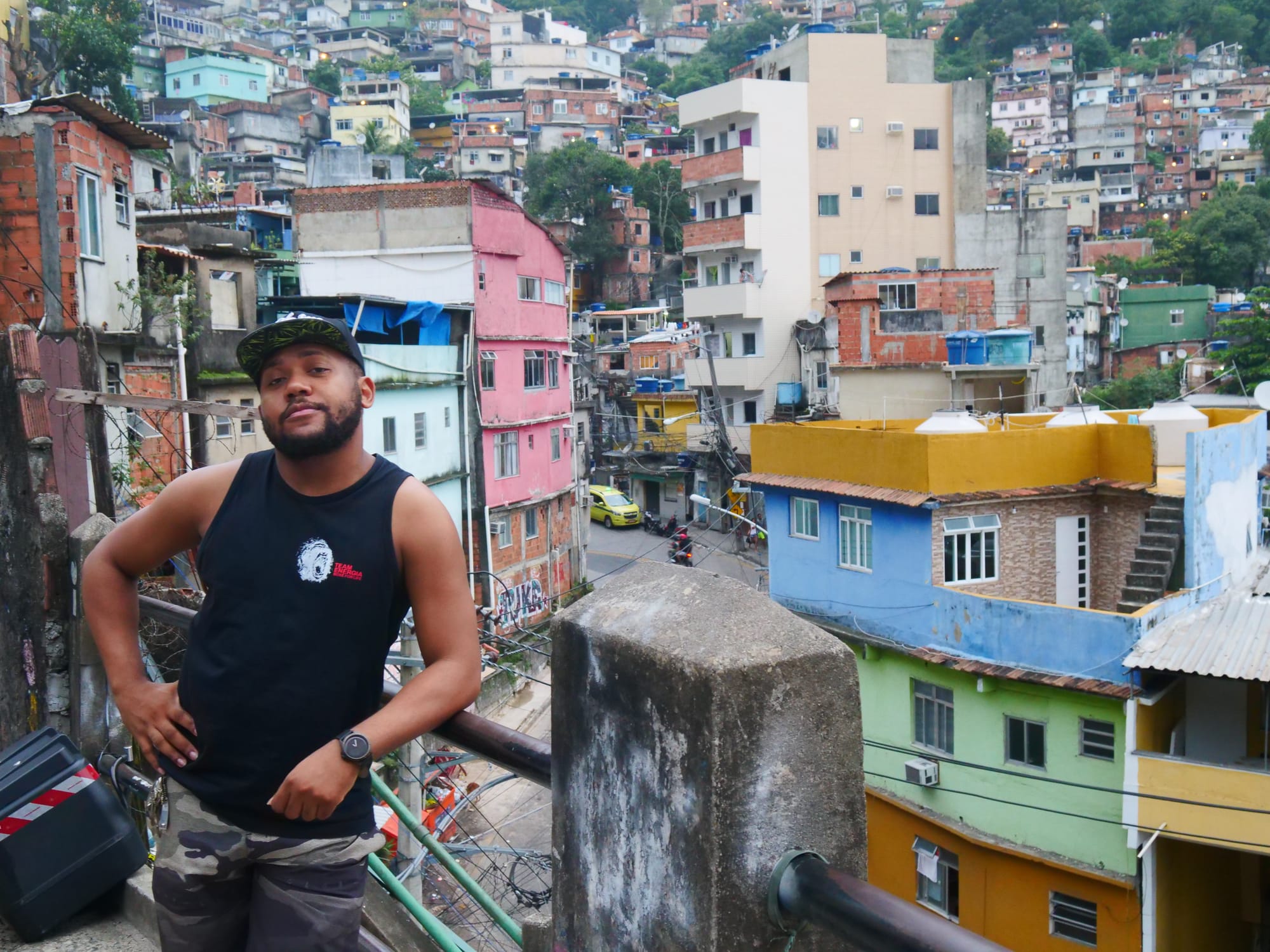 “The actors, the producers, the whole team has a second job. I am a manager at a clothing store, and I make films up here on the hill on the side,” says Sergio Dias, Rocywood’s 31-year-old director. Dias was born and raised in Rocinha where he is known by his stage name, Sergio Mib. His one-bedroom apartment functions as a dressing room and houses Rocywood’s equipment and props, including three toy assault rifles that look impressively real.