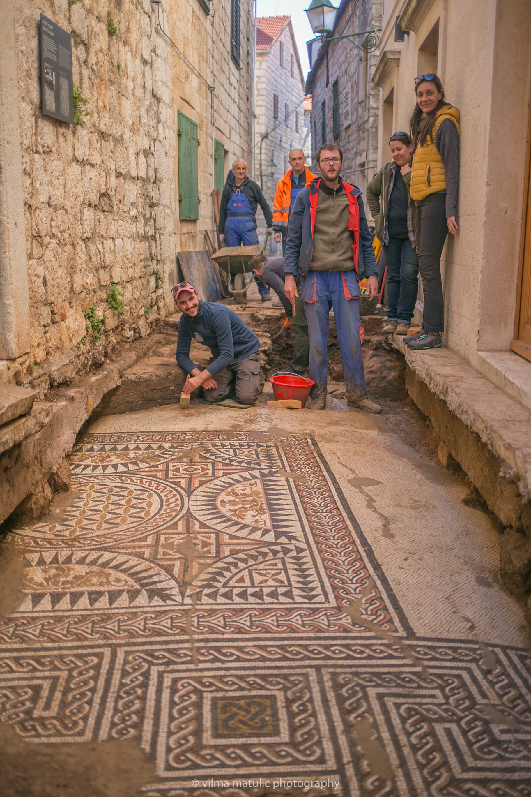 The mosaic was found along Middle Street, a narrow, 65-foot-long cobblestone thoroughfare that runs through the ancient city center, during an excavation led by Marina Ugarković, a research associate at the Institute of Archeology in Zagreb, and the Stari Grad Museum.