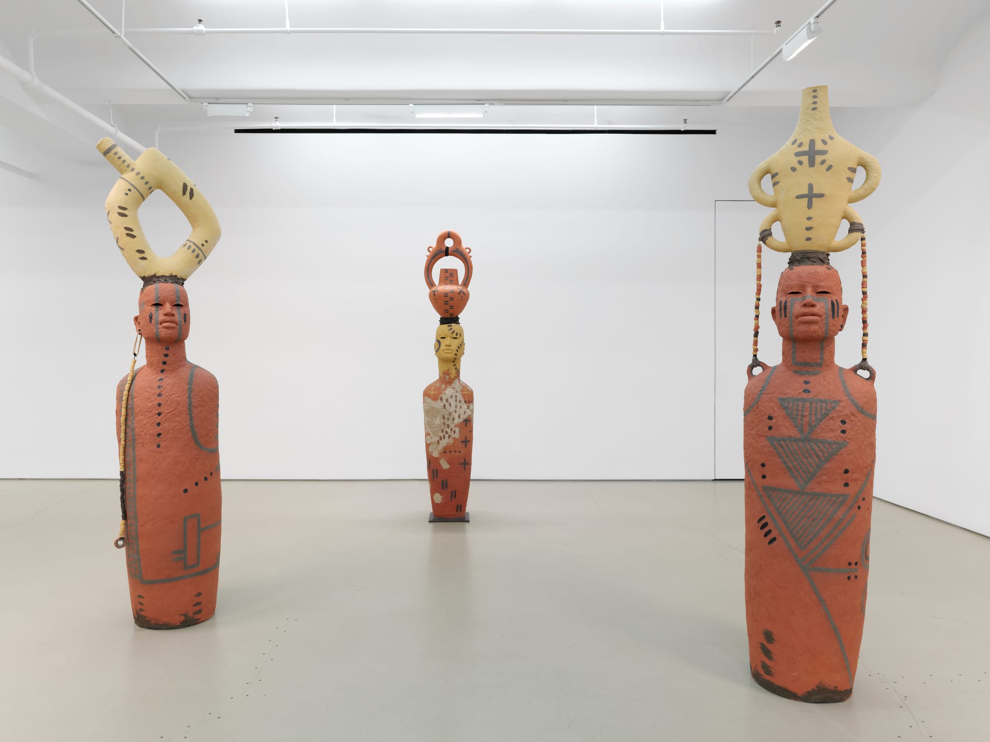 When I first saw reproductions of Rose B. Simpson’s mysterious ceramic guardians, I immediately wished I could see the actual objects. My wish was granted with her debut New York exhibition, Rose B. Simpson: Road Less Traveled, at Jack Shainman Gallery, running through April 8. The subject of recent solo exhibitions, including LIT: The Work of Rose B. Simpson, at the Wheelwright Museum of the American Indian in Santa Fe, New Mexico (2019), and Rose B. Simpson: Legacies at the Institute of Contemporary Art in Boston (August 11, 2022–January 29, 2023), Simpson is an innovative sculptor who both breaks the mold and, according to the ICA press release, extends her legacy as “part of a multigenerational, matrilineal lineage of artists working with clay.” She has done more with her talents than anyone has the right to expect, and that comes through in the work.