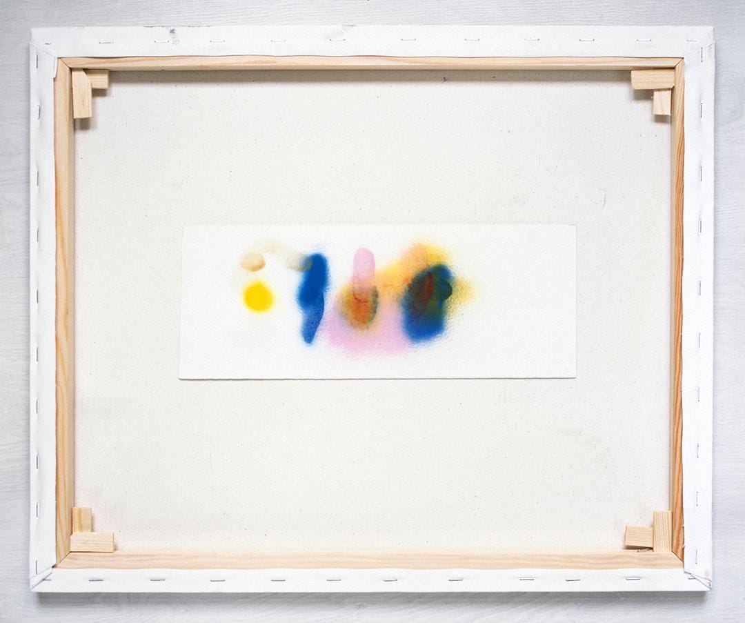 The artworks include pencil drawings, patterns done in liquid mediums, such as ink, and another group made with spray paint. I was reminded of Richard Tuttle’s watercolors, especially ones that include a pattern. Marasco’s framing shifts the way we look at them; something that was abandoned becomes a work of art memorialized by the photograph.