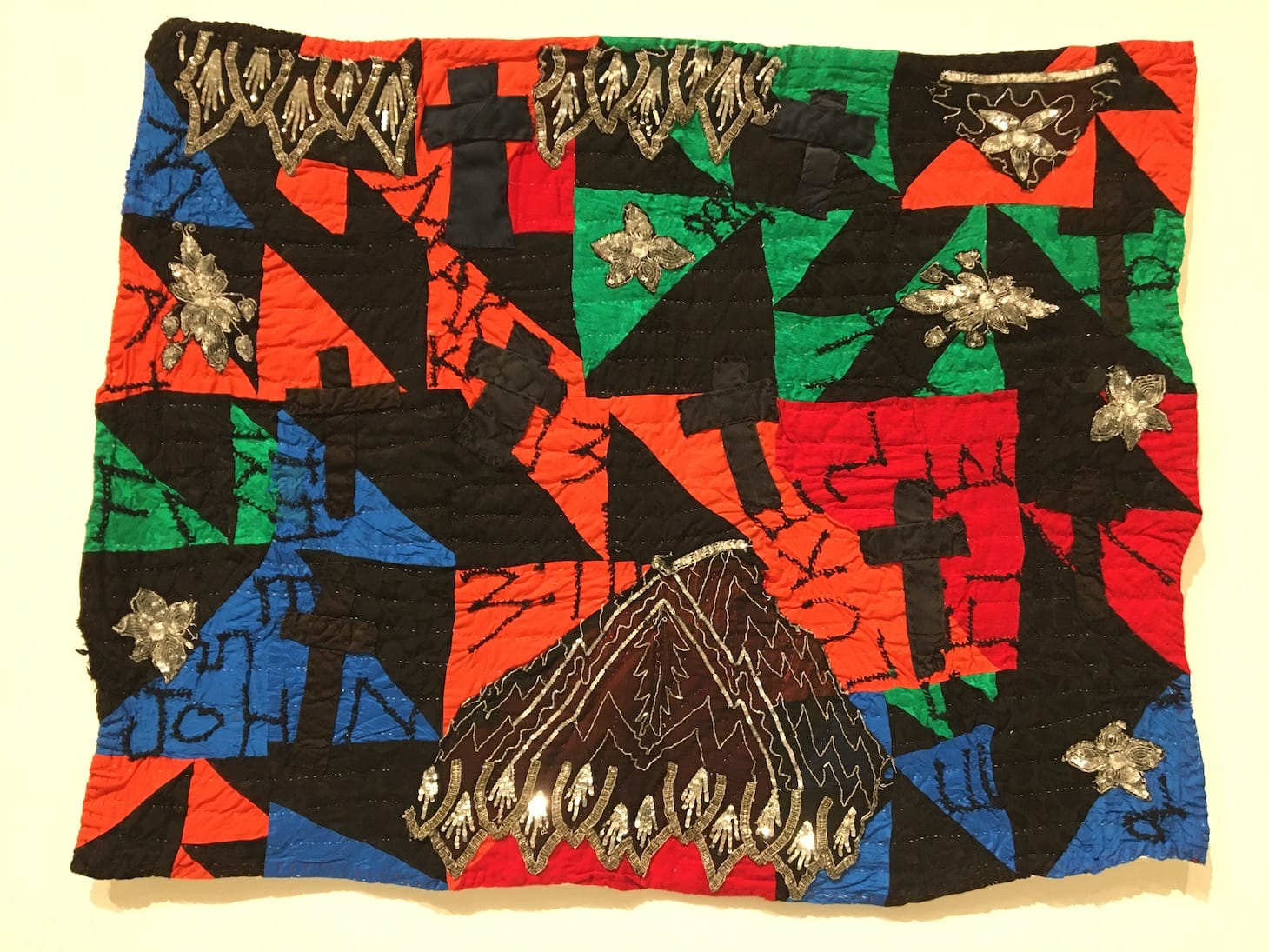BERKELEY, Calif. — The artworks of Rosie Lee Tompkins, born Effie Mae Howard, defy easy definitions. Her quilts are at turns abstract beauties, political statements, faith-based texts, and textile craft. She was known for employing cryptic symbols including crosses and “yo-yo’s,” and until her death in 2006, Tompkins rarely spoke publicly of her work, having an intense desire to stay out of the limelight. She turned away countless interviews and appearances even as her exhibitions began to garner fame and critical acclaim in the mid-1980s.