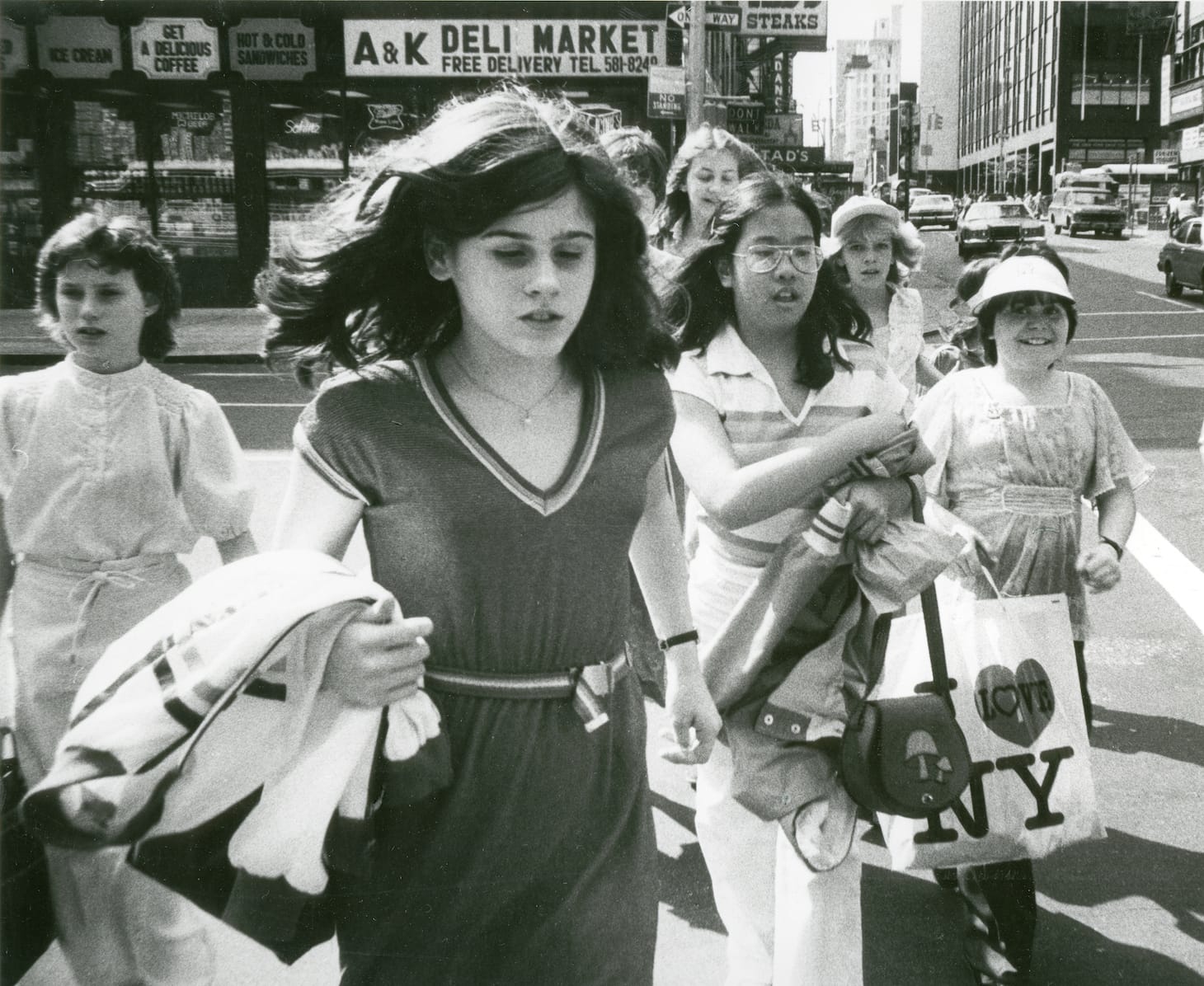 He photographs two girls in the street because their black hair is long and shiny. They are wearing jeans and white tops. What catches our attention as we walk around New York? Why do we look at one person and not another? I think Burckhardt’s comfort and openness leads to a very different body of work than that of other photographers who used Manhattan as their setting. There is an innocence and curiosity to his looking, a feeling of quiet joy. He is genuinely glad to be living in New York and does not find it threatening or alienating.