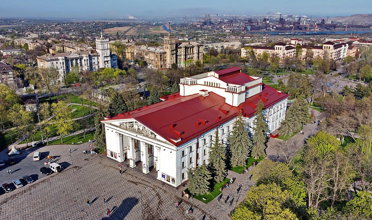 A post on Mariupol City Council’s official Telegram page shows a photo of the wrecked Donetsk Regional Theatre of Drama with a caption that says the central part of the building was destroyed, in addition to the entrance to a bomb shelter located underneath the structure.