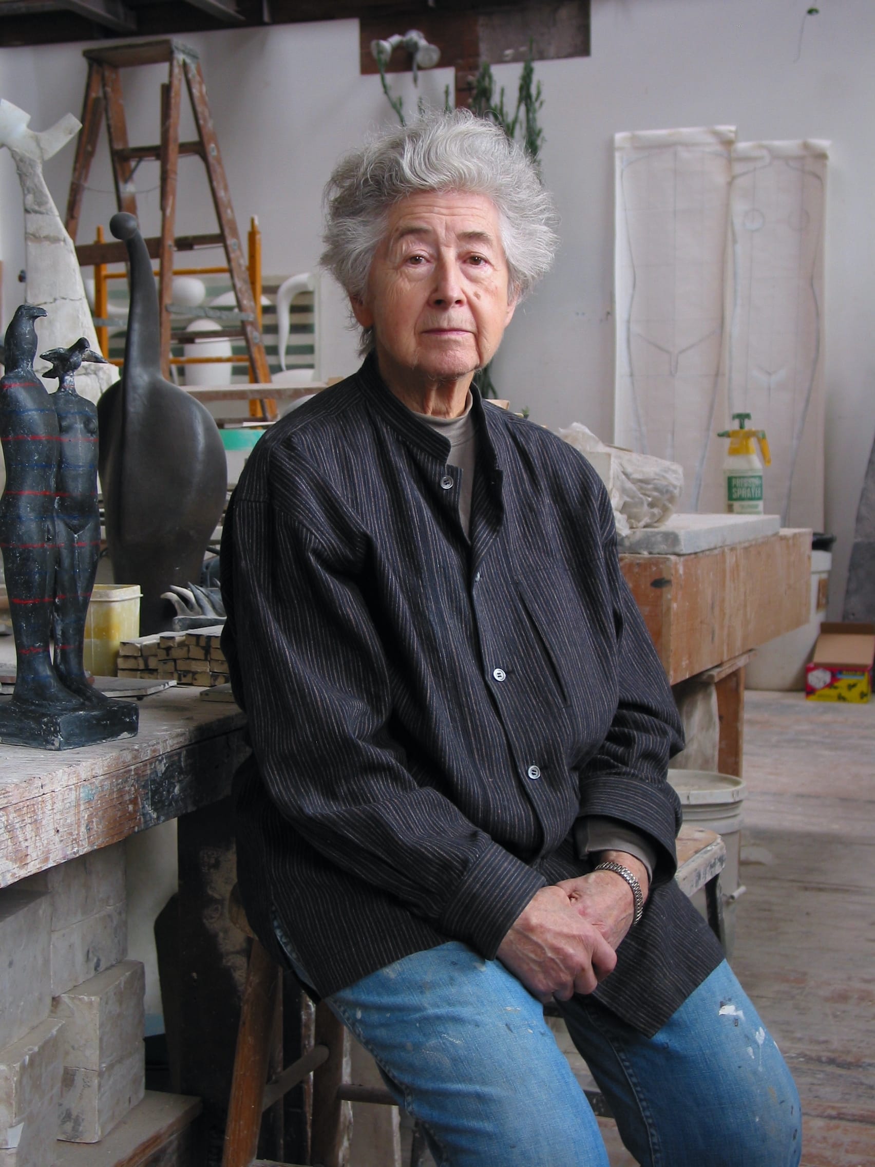 In 1964 she was invited to a year-long residency at the University of Chicago’s Midway Studios and moved to Chicago permanently one year later, maintaining home studios in the city and remaining creatively productive there for many decades. (She died in 2009 at age 90.)