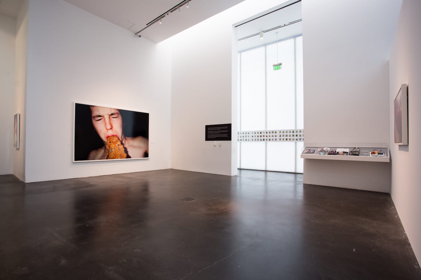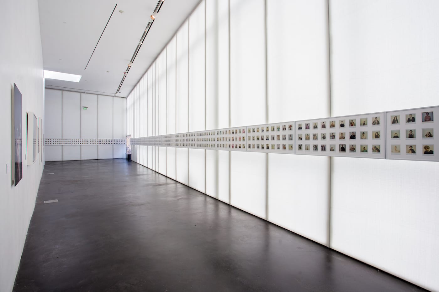 In 1999, the artist started documenting every visitor to his apartment: family, friends, himself, as well as others he met when out at night. He produced more than 10,000 Polaroids in less than five years, each labeled with the name of his subject and the date. In nearly every photo, the subject is set against a stark white wall. Even when the shots were taken on the roof of his apartment building or out at a bar, McGinley brought a large white screen to “stage” them. This controlled context enables each subject’s personality to become more pronounced: people pose, flex, or barely endure the photo request. These Polaroids wrap the second floor of the MCA Denver, accompanying the visitor from one gallery space to the next. The consistency of the single figure photographed from the waist up with the same background also allows McGinley’s inner circle to be easily identified, given their reoccurring presence in the series.
