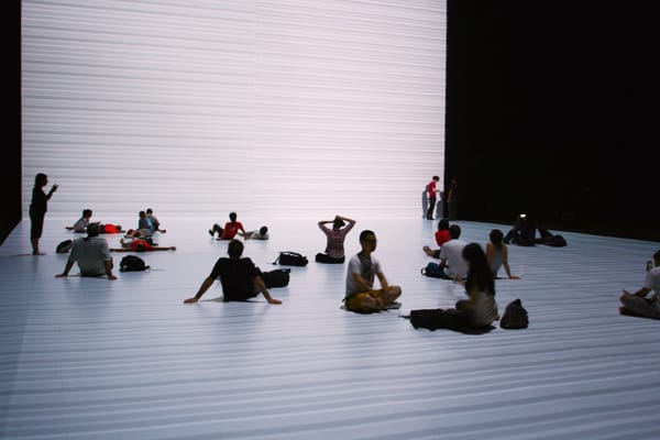 “the transfinite”‘s projected images of the 0’s and 1’s of code suggests that Ikeda is examining the idea that our world is controlled by unseen forces of technology. But I agree with New York Times reviewer Ken Johnson when he writes, “As a whole, ‘the transfinite’ is futuristic in a way that already feels dated, like a set for a 1990s science-fiction movie.”