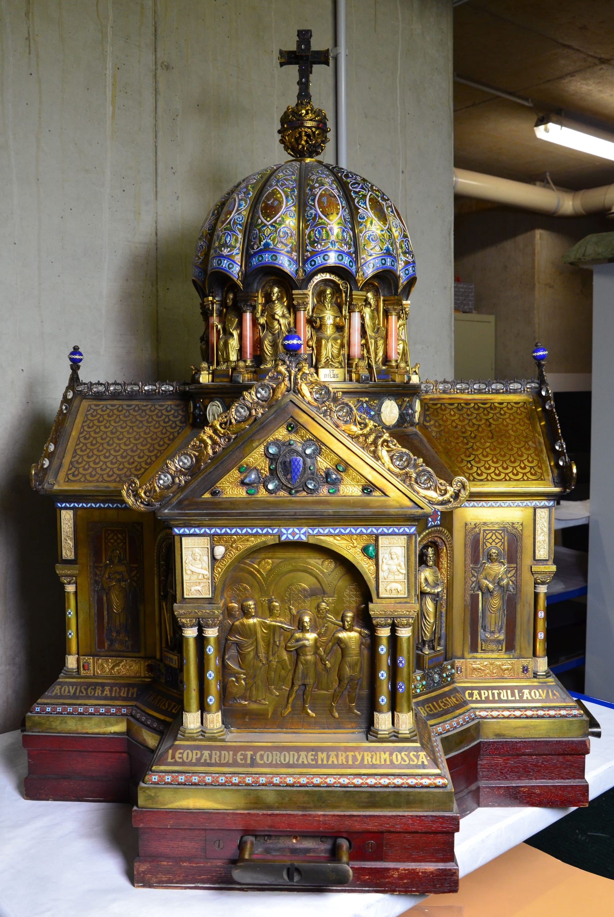 According to the New York Times, Corona’s relics were brought to Aachen by King Otto III in 997. They were held in a tomb in the Roman Catholic cathedral, built by Emperor Charlemagne in 803 and one of Europe’s oldest, before they were stored in the elaborate shrine in the 20th century.