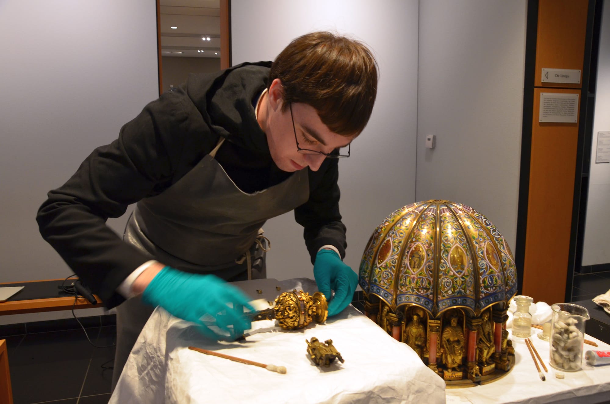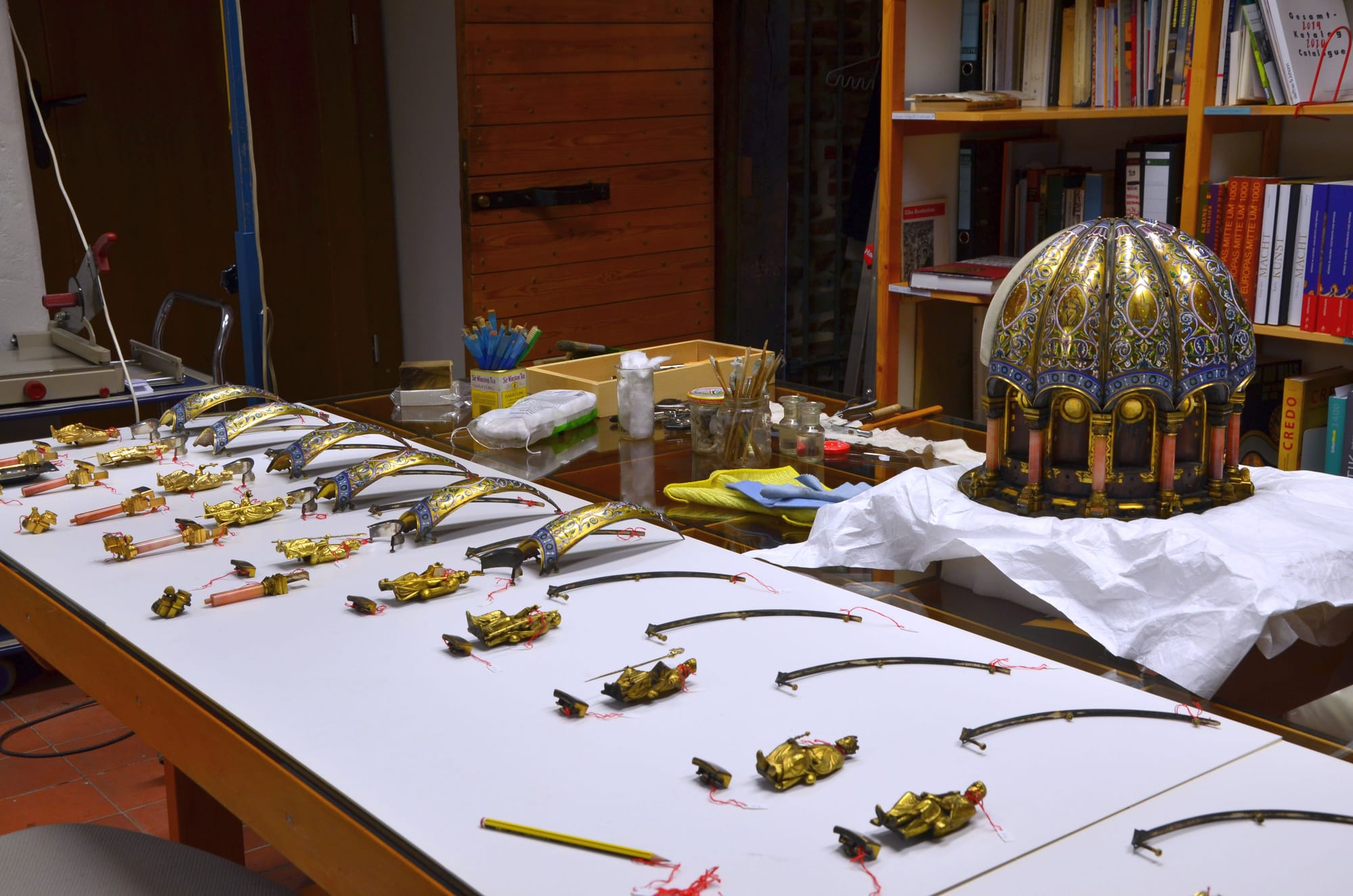 The cathedral had pulled a 216 lb embellished gold, bronze, and ivory shrine holding the relics from storage with the plans of flaunting it this summer, in an exhibition dedicated to gold craftsmanship. While the show’s opening date is now uncertain, a conservator is meticulously cleaning the shrine to ensure it is ready for public eyes once the pandemic is over.