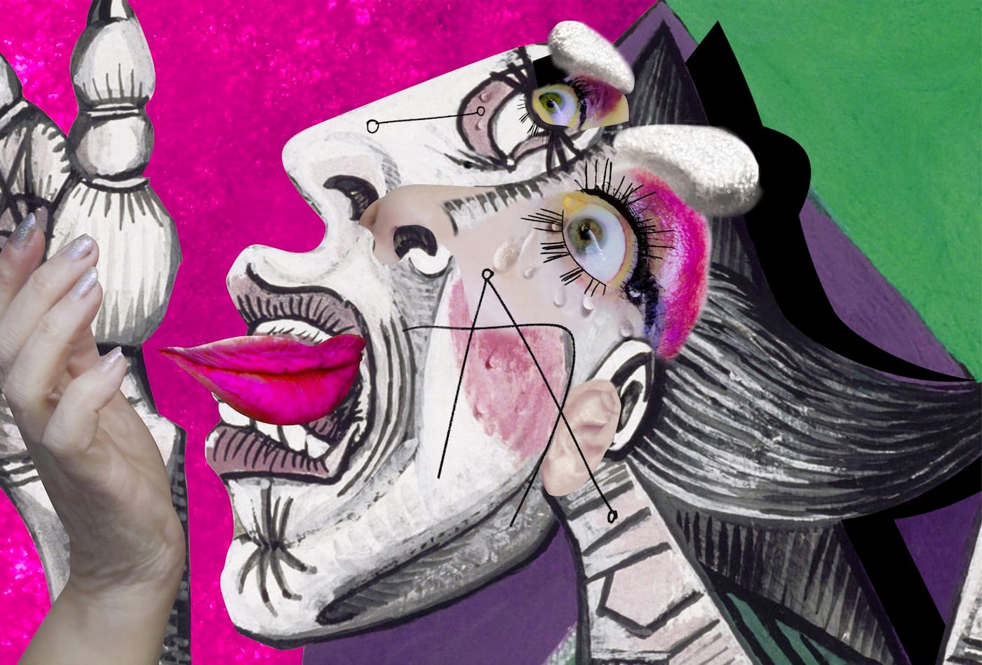 The second is focused on the neglected muses of certain 20th-century masters. “It begins when Picasso painted Dora Maar while she was weeping.” Orlan told me. The work product has been a set of what she calls “hybridized photographs,” which is to say images that have been collaged and drawn upon, each with misplaced eyes alongside the nose, mouth open in an anguished shriek, and tears coursing down their cheeks. A show opens formally in the Sorbonne Art Gallery on the Place du Pantheon on November 8 and will run until January 14.
