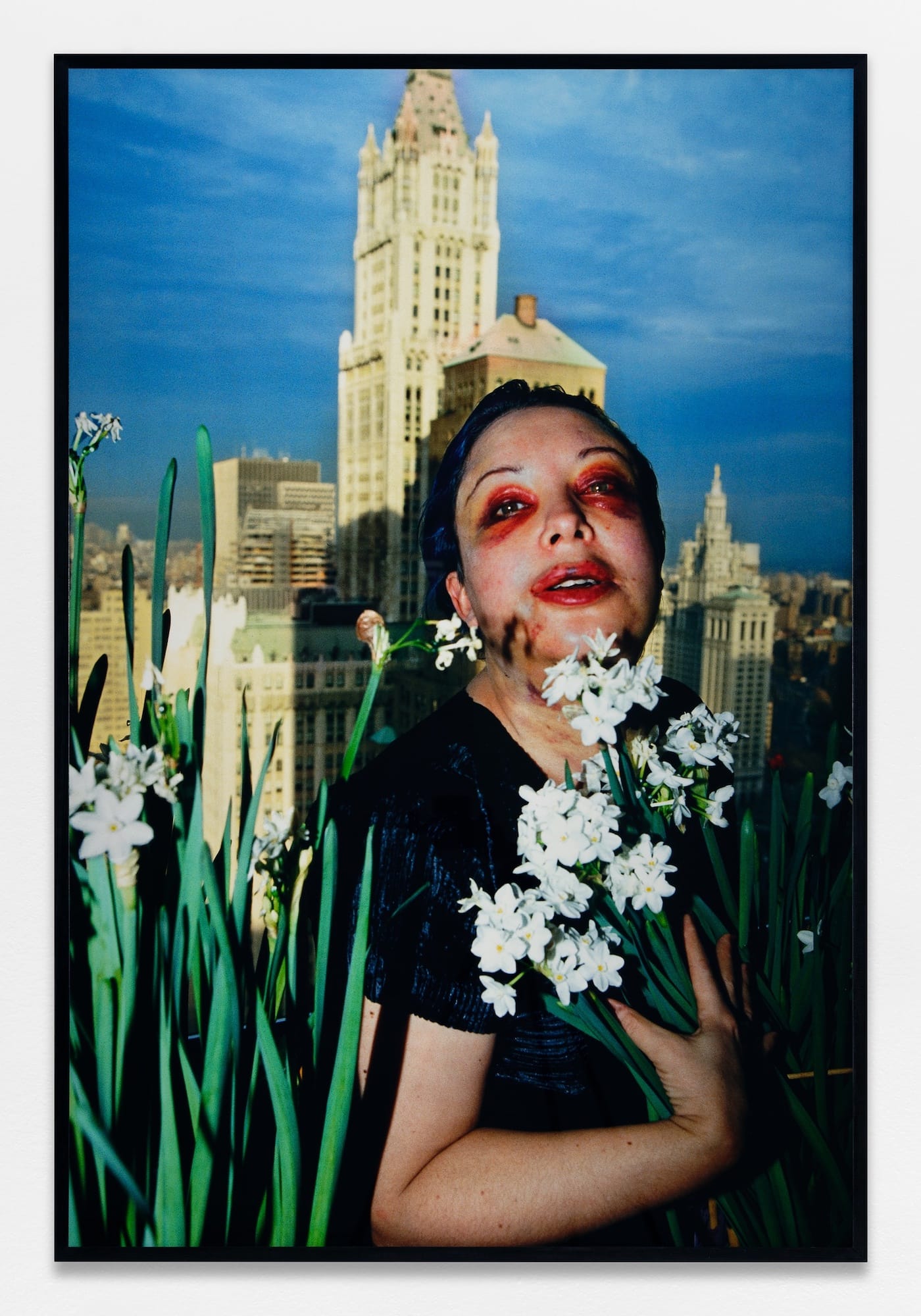 There is plentiful documentation of her operations up at Ceysson & Benetiere, both verbal and photographic. In one photo she shows off her bruised and puffy post-operational features. No Artist’s Statement though. “I wanted to interrogate all the stereotypes about beauty” she told me. “You have to understand that it was not a personal operation, to make myself more beautiful. It was an operation to change an image, to fabricate a new image, and so to have more images for my work. That was the purpose of the piece.”
