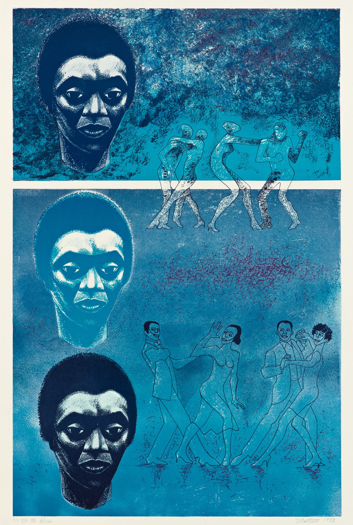 The top lot in the overall sale, Hale Woodruff's "Carnival" (1958) — sold for $665,000 — was the artist's largest abstract canvas to come under the hammer and had not been seen publicly in over 70 years. Elizabeth Catlett's carved limestone sculpture "Head" (1943) fetched $485,000, nearly doubling its high estimate. The 13-by-9-inch bust is one of the few known stone pieces made artist, who emigrated to Mexico and rose to prominence for her poignant works centering the Black female experience. A different work by Catlett in the sale, a lithograph titled"Blues" printed and published by Brandywine in 1983, was sold to support the organization's legacy endowment campaign.