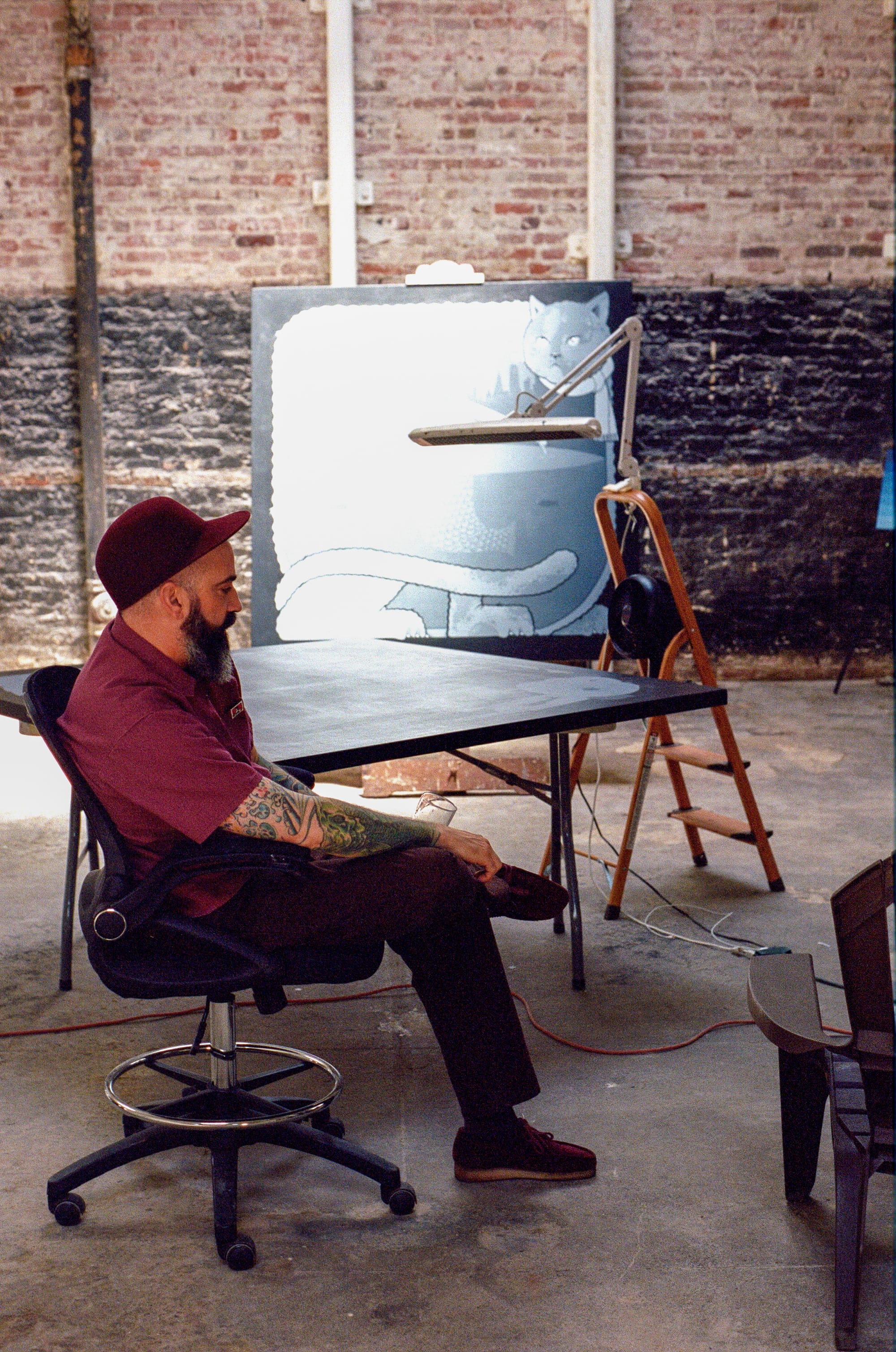 Jeremy Fish personifies the resilience of San Francisco’s artistic communities. Over his 25 years as a working artist in the city, he’s found ways to get by, ranging from living in a closet at the back of a gallery to bartering a mural in exchange for free pizza for life from a local restaurant. His current studio, a light-filled former bakery in the North Beach neighborhood, is on loan from the owners.