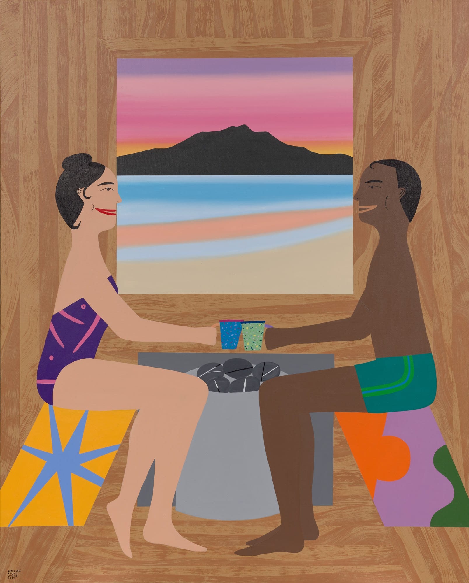 Wong created her painting of two people in a sauna with a view of Marin’s Mount Tamalpais after visiting the spot in Richmond, a city near Oakland.