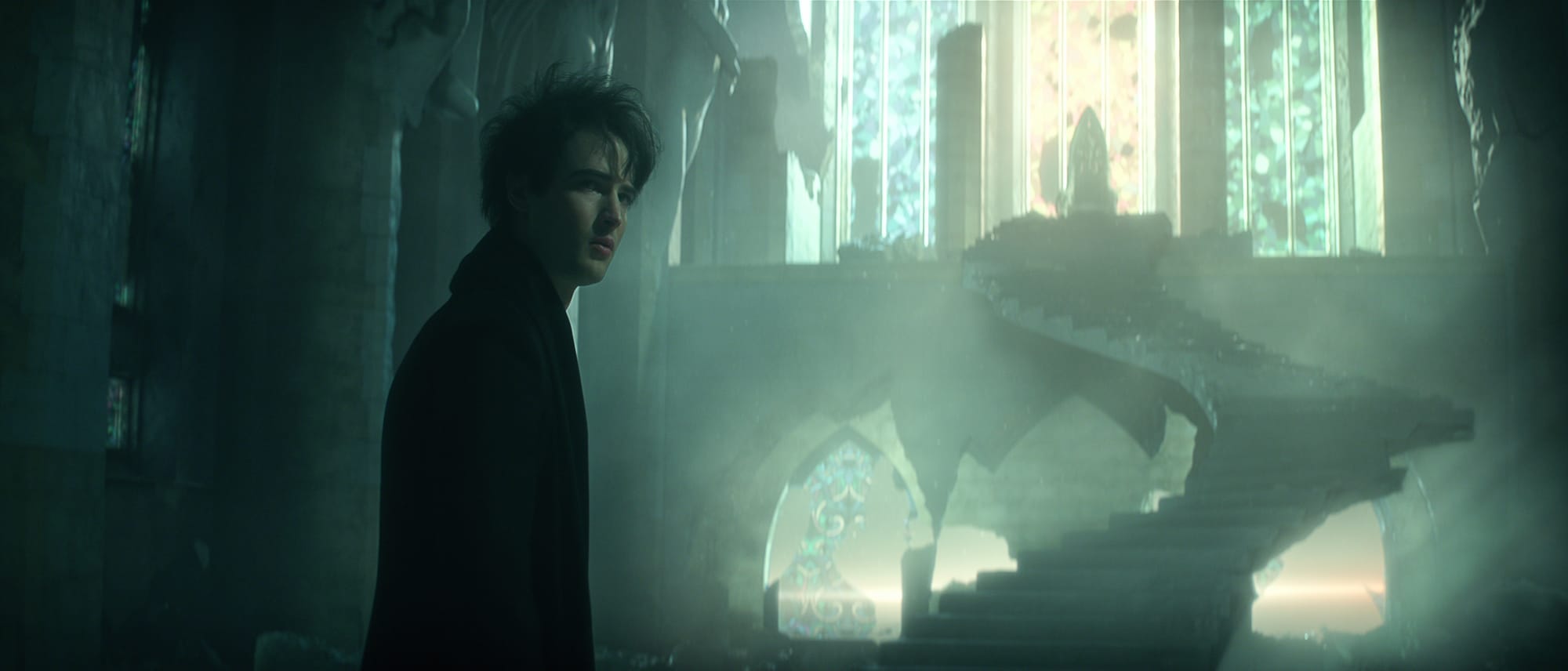 In contrast, the show looks like ... well, every other Netflix show. It has flat, frequently oversaturated lighting and coloring, workmanlike framing, and staid editing. Often the only thing that distinguishes the waking world from the Dreaming is an overabundance of CGI (perhaps the color filters might get a bit more forceful). The show has an uphill fight here; the page is an unlimited canvas for one's imagination, with a reader's mind working in tandem with the artist's pen. On the screen, though, we are inured to spectacle. The crumbling castles, demons, and friendly gargoyles in this show look too much like what's come before. Worse, in some cases, the creature design is aggressively less interesting than in the comic. The original version of Choronzon, a demon whom Morpheus battles for his helmet, is a purple creep with sunglasses and two mouths. The show's version of the demon has some goopy antennae coming out of his head.