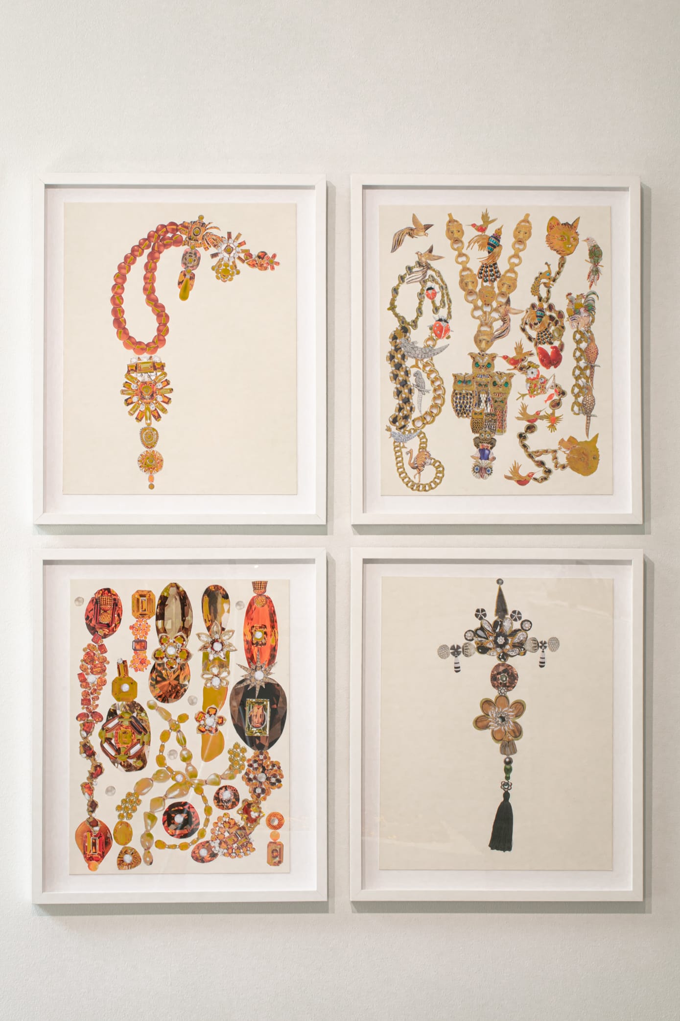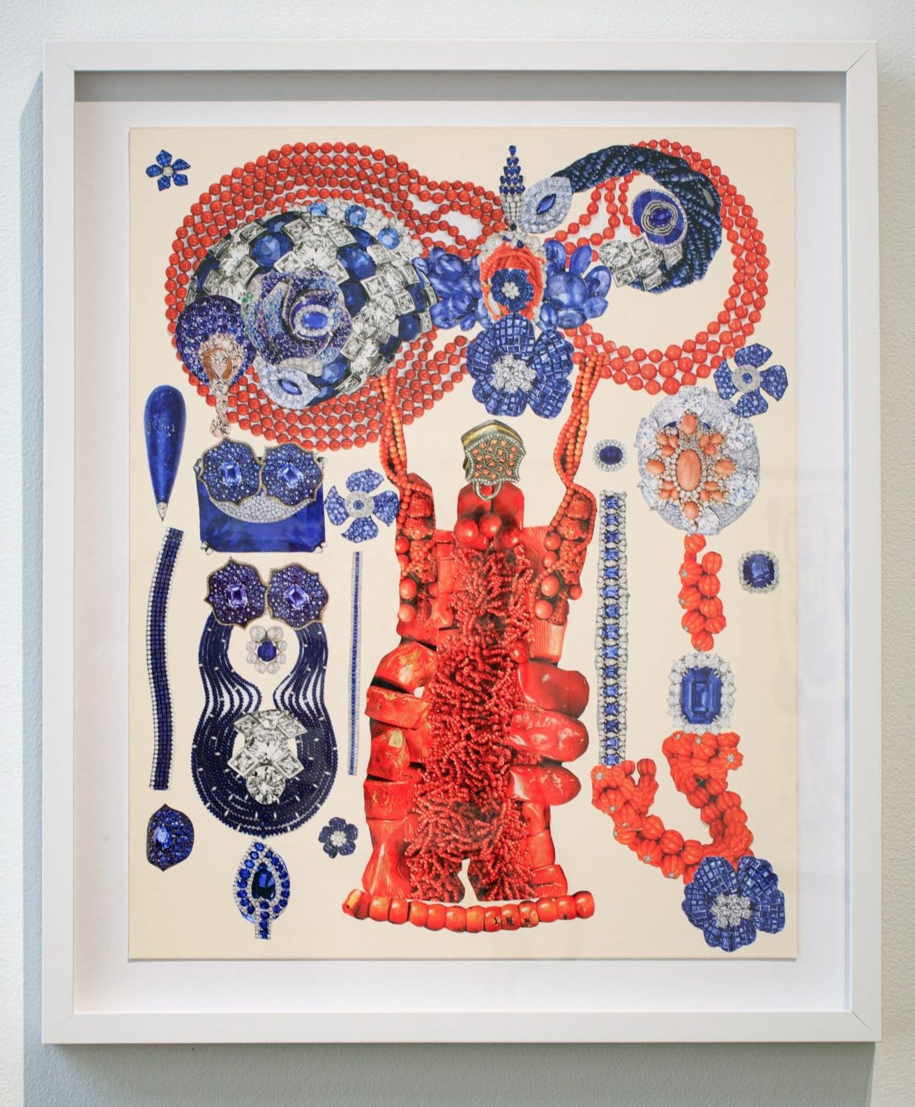 A World of Shine centers on a series of collages cut from high-resolution images of fine jewelry sold in auction catalogues, but it includes as well a selection of Payne’s figurative ink drawings, aluminum sculptures, and tableaux of antique bric-à-brac. Accompanying the exhibition, a monograph designed by Danielle and Kevin McCoy of Work/Play features contributions from the curatorial team, in addition to reflections from a wide array of Payne’s contemporaries and loved ones.