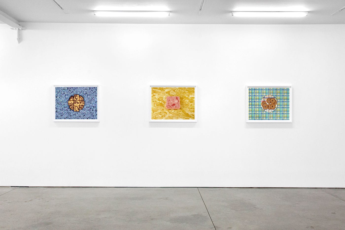 This childhood memory jumped to mind as I walked through Ryan Lee gallery’s exhibition of Sandy Skoglund’s Food Still Lifes, a series of 10 color photographs of painstakingly arranged processed foods, all set against popular — and at times instantly recognizable — 1970s contact papers. Shot in 1978, when the artist was in her early 30s, the series marks the beginning of what came to be Skoglund’s signature style of staged, surreal, and carefully pigmented tableaux.