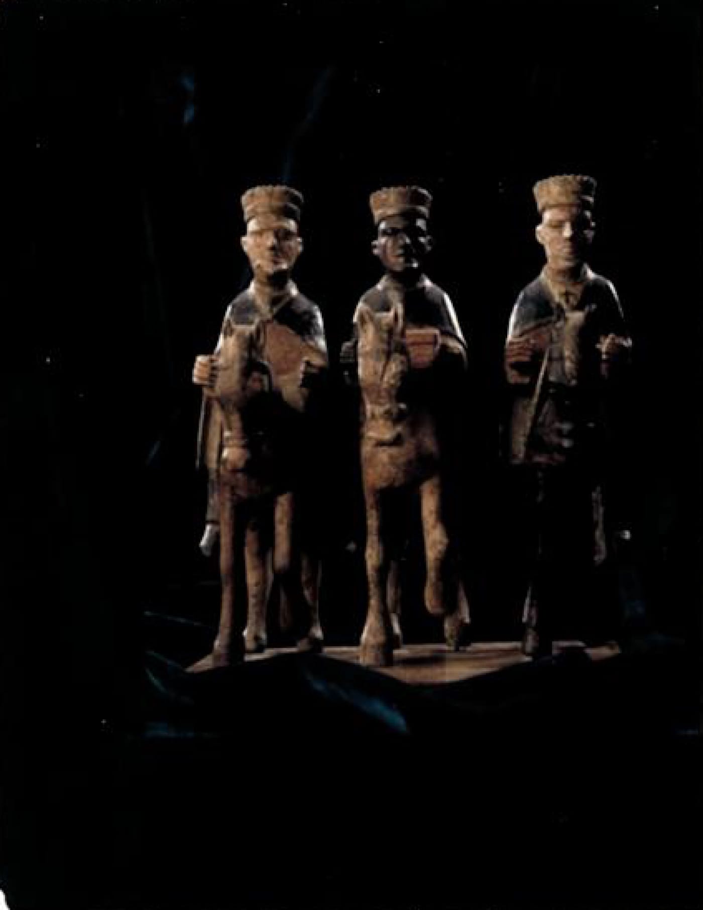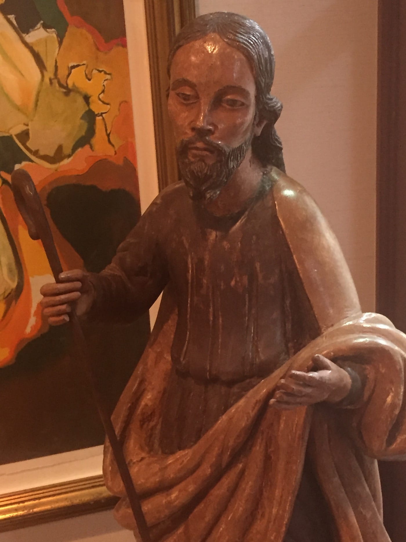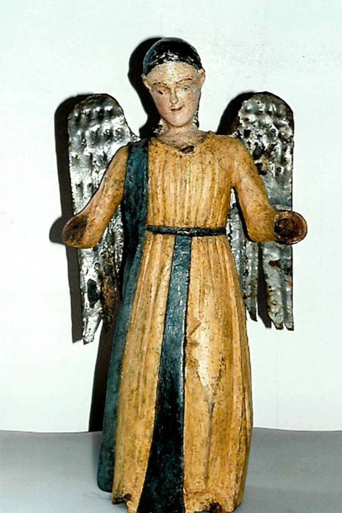 At times, santeros painted new outfits on the icons. Different designs were used for different ceremonies. They could have as many as 8 or 10 layers of paint, each one a costume laid thickly on top of another. Statues served many functions. In some cases, they were seen as conduits for miracles. If someone had a broken leg, for example, they would hang a silver limb from the saint they had prayed to, in hopes of quicker healing.