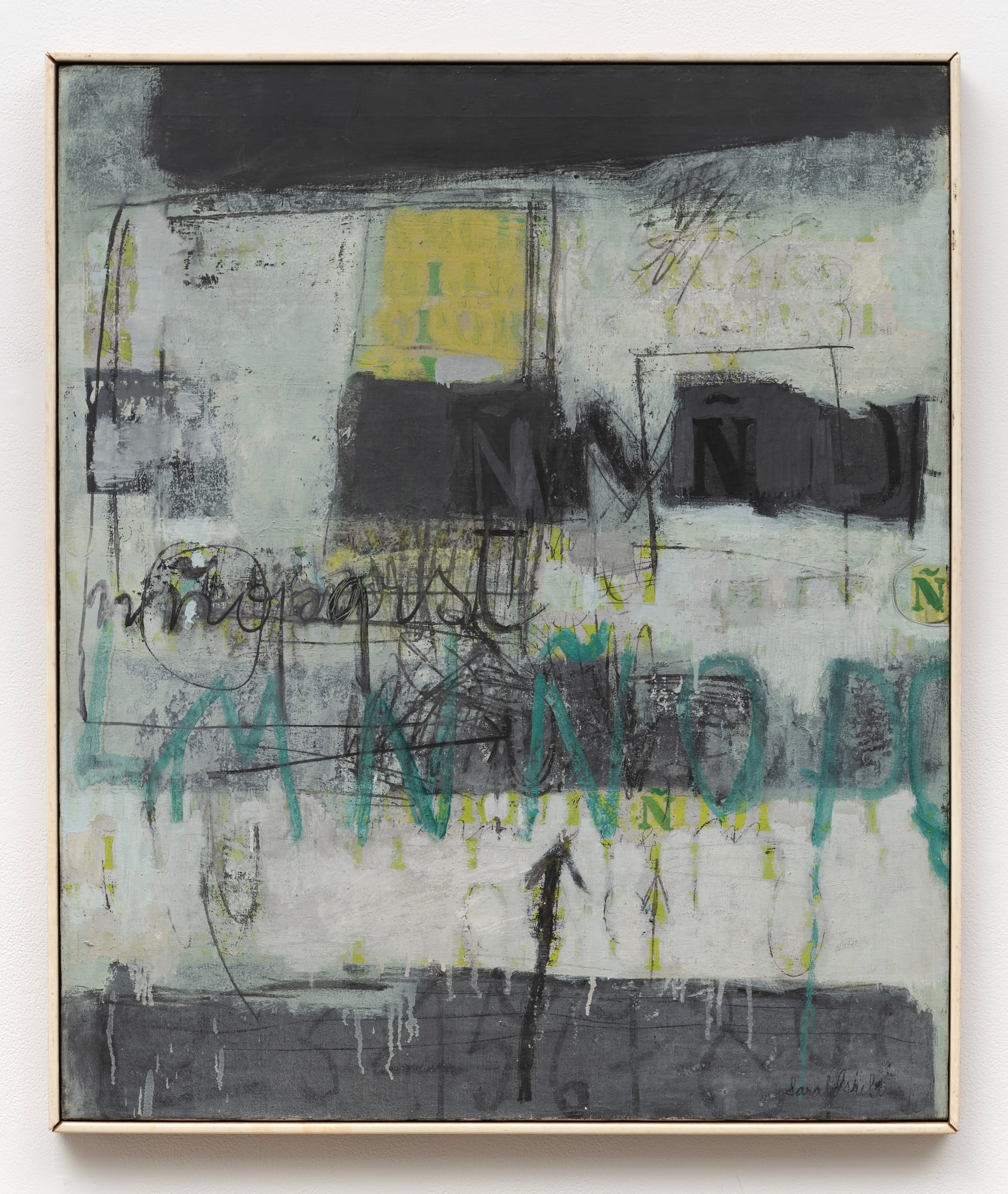 After winning a Guggenheim Fellowship in 1961, Grilo and her husband, painter José Antonio Fernández-Muro, relocated to New York City. There, her approach took a decisive turn toward incorporating language into the picture planes, which would define her oeuvre for the next half-century until her death in 2007.